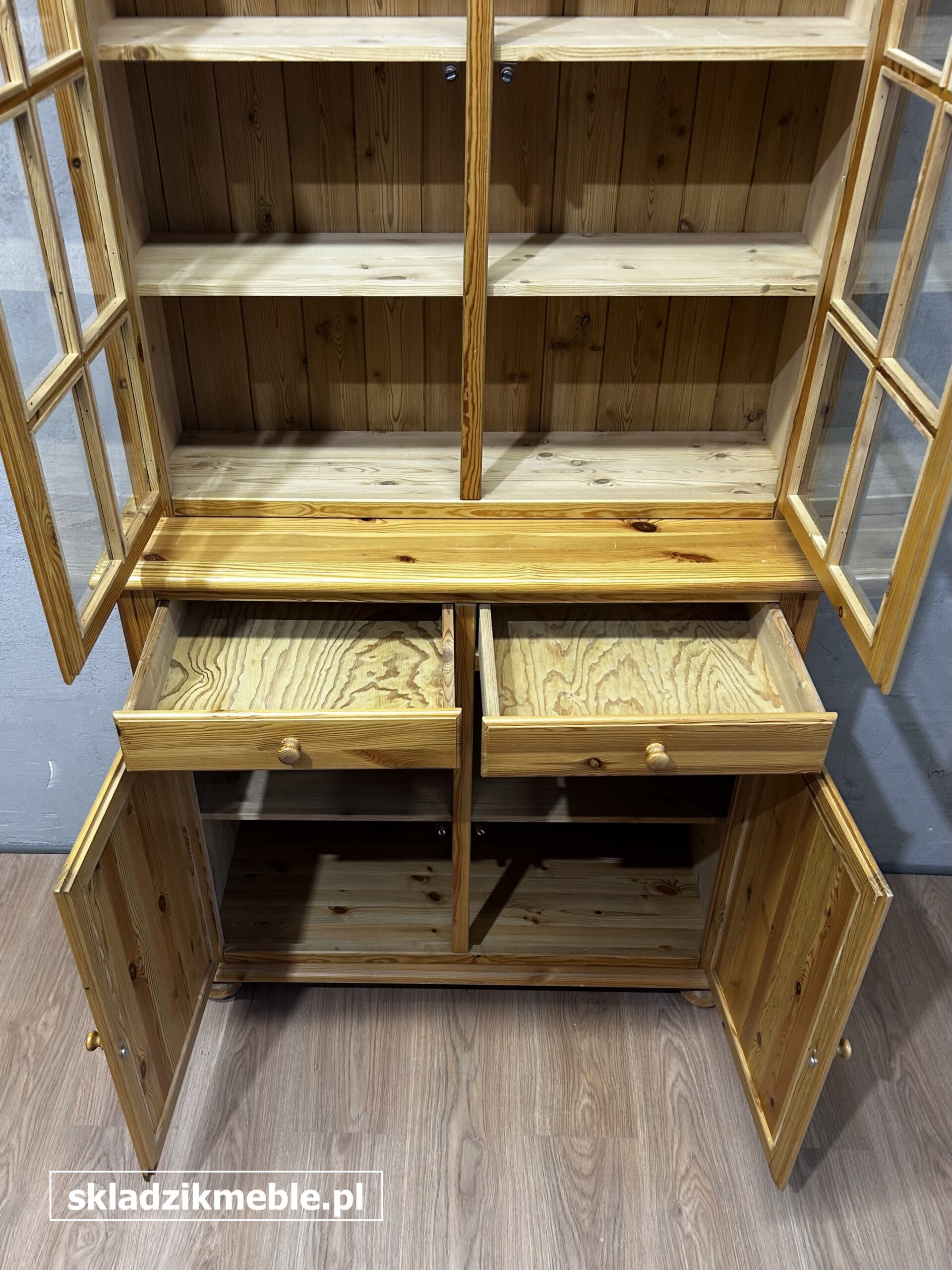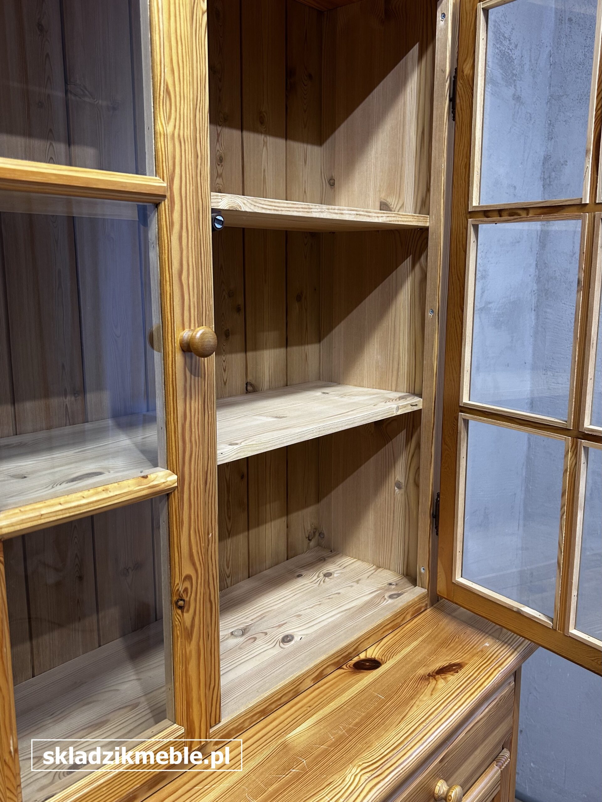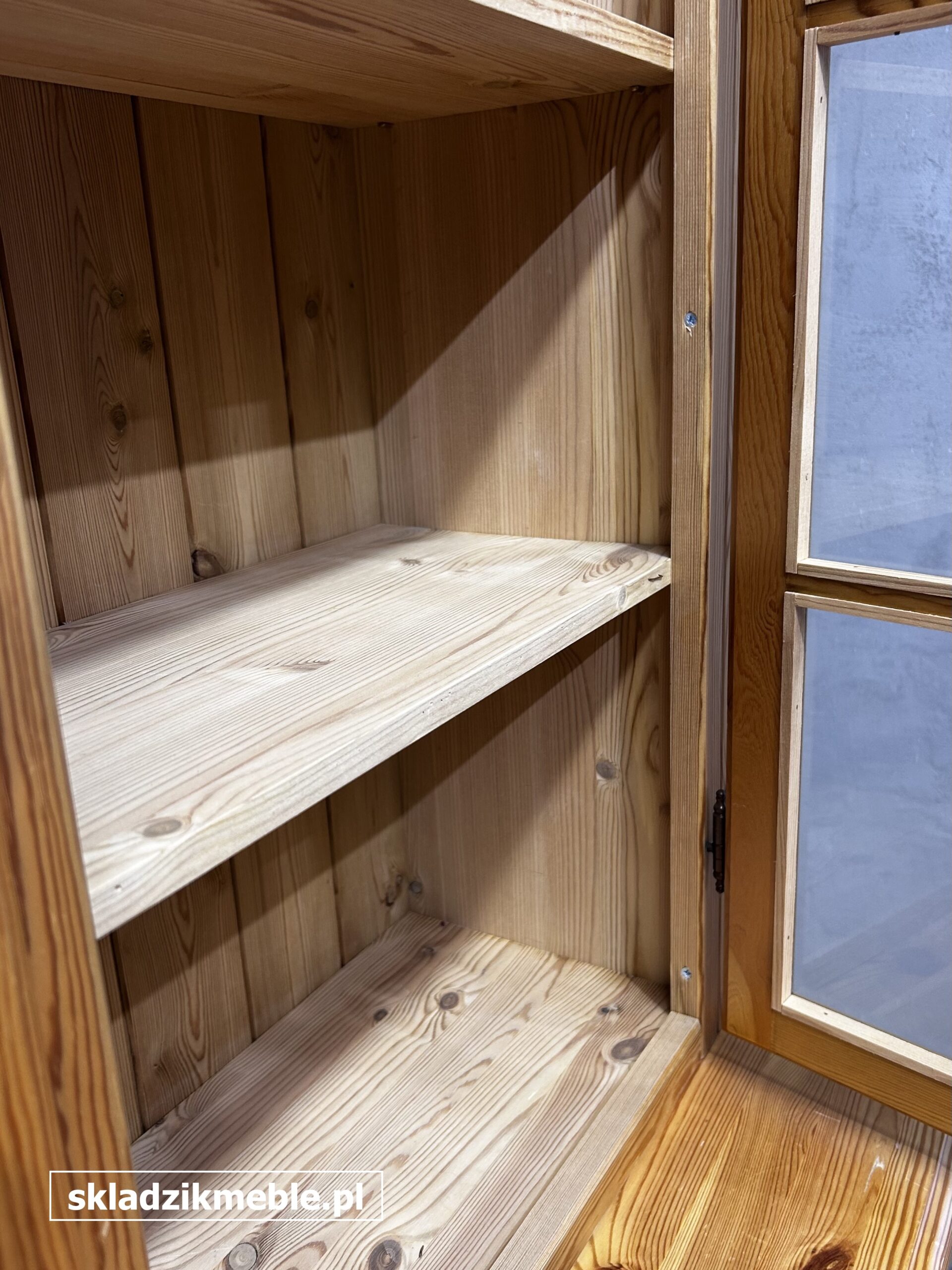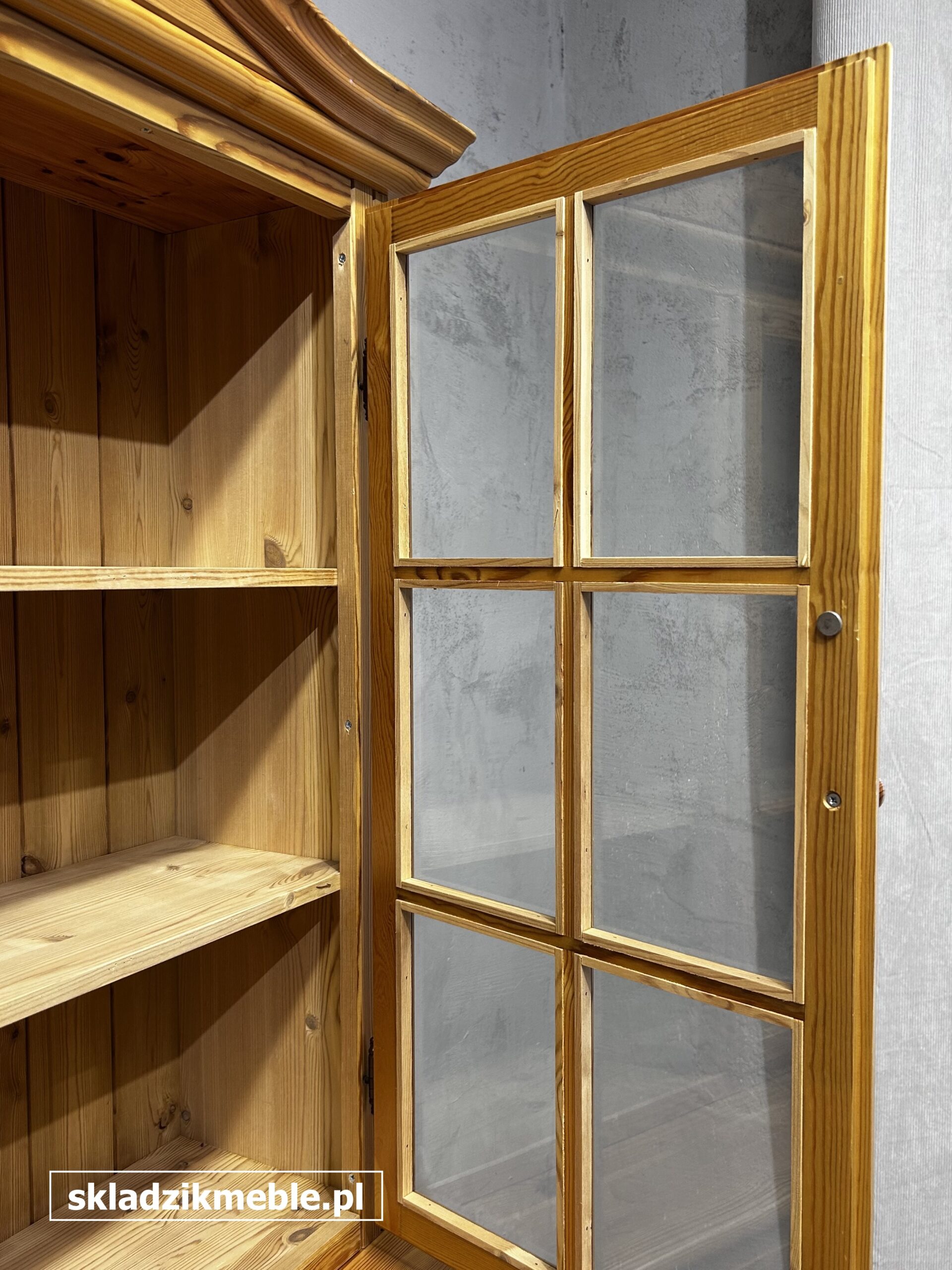 030226 WĄSKI KREDENS SOSNOWY, PRZESZKLONA WITRYNA