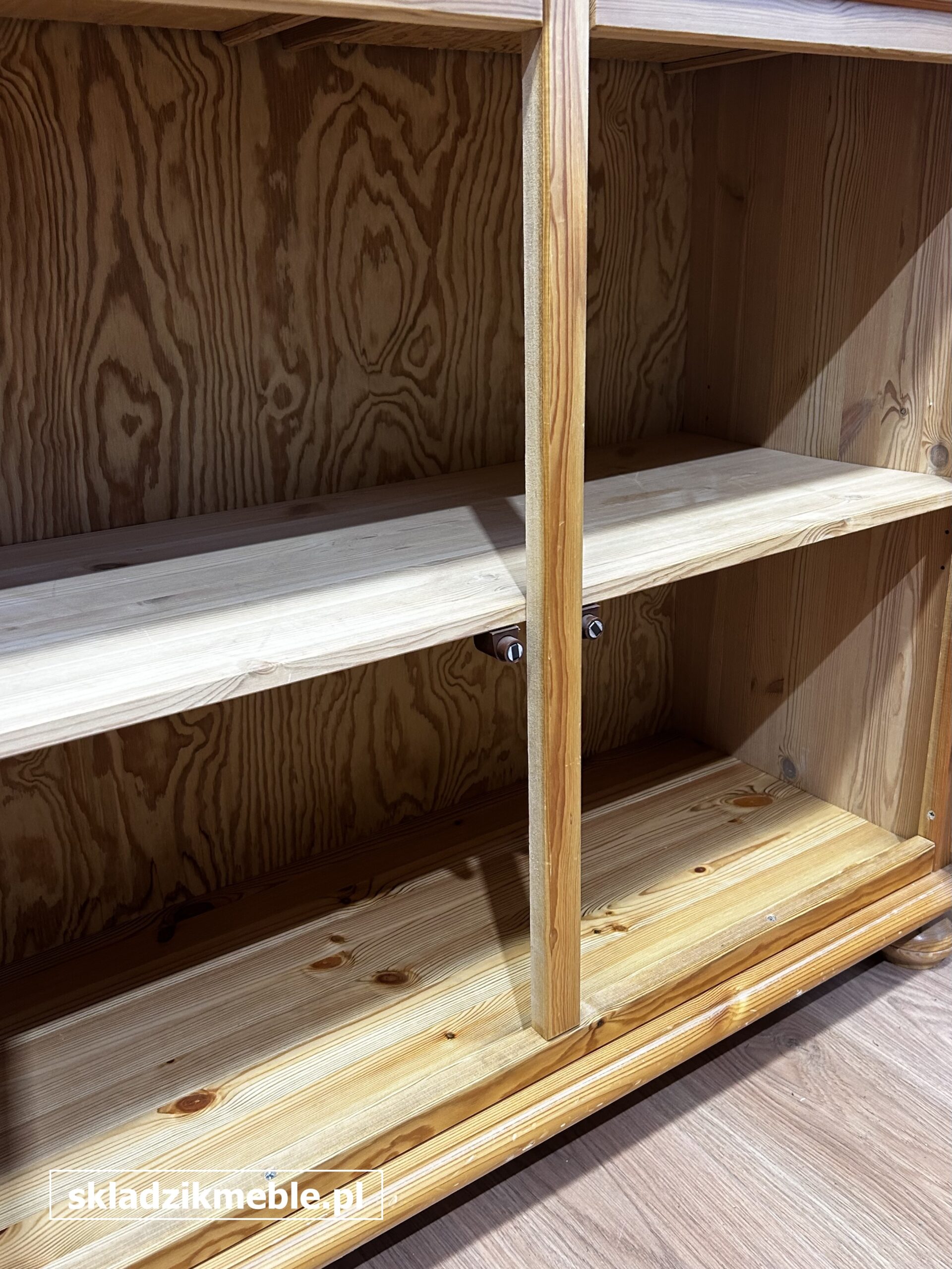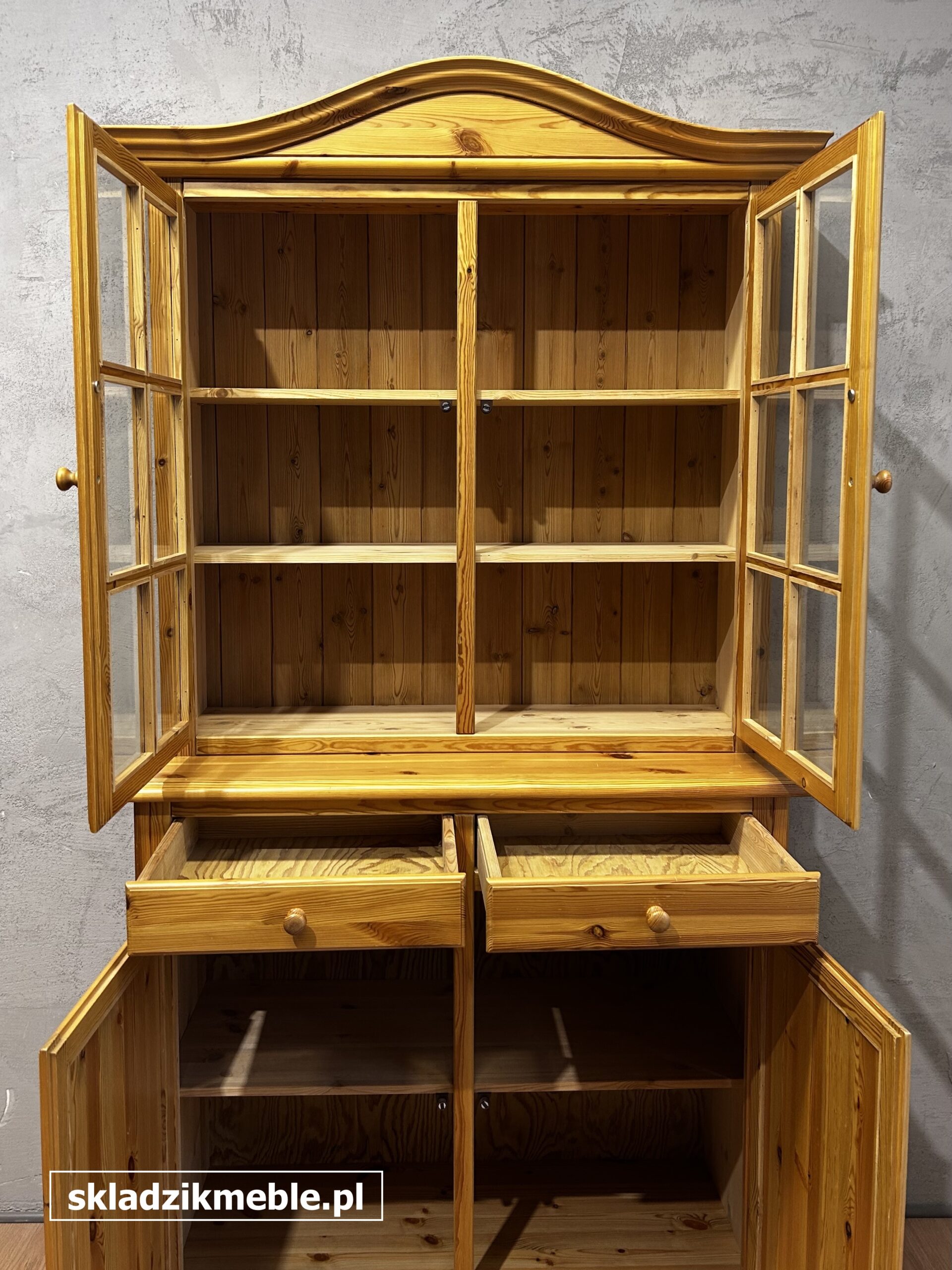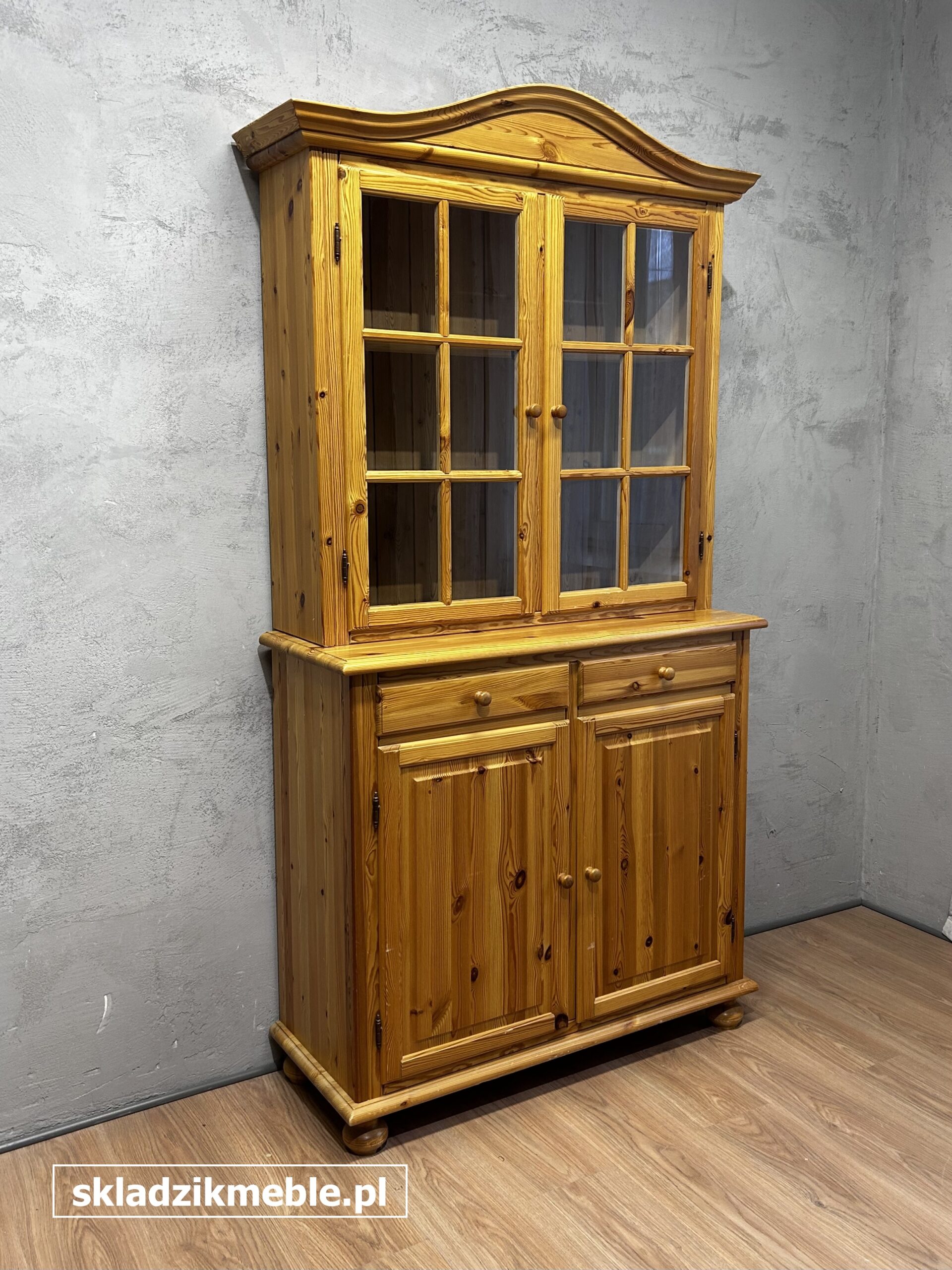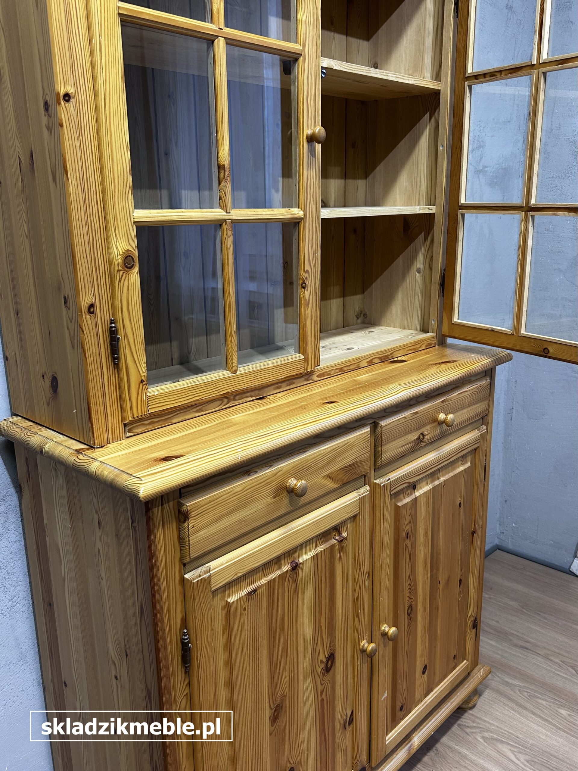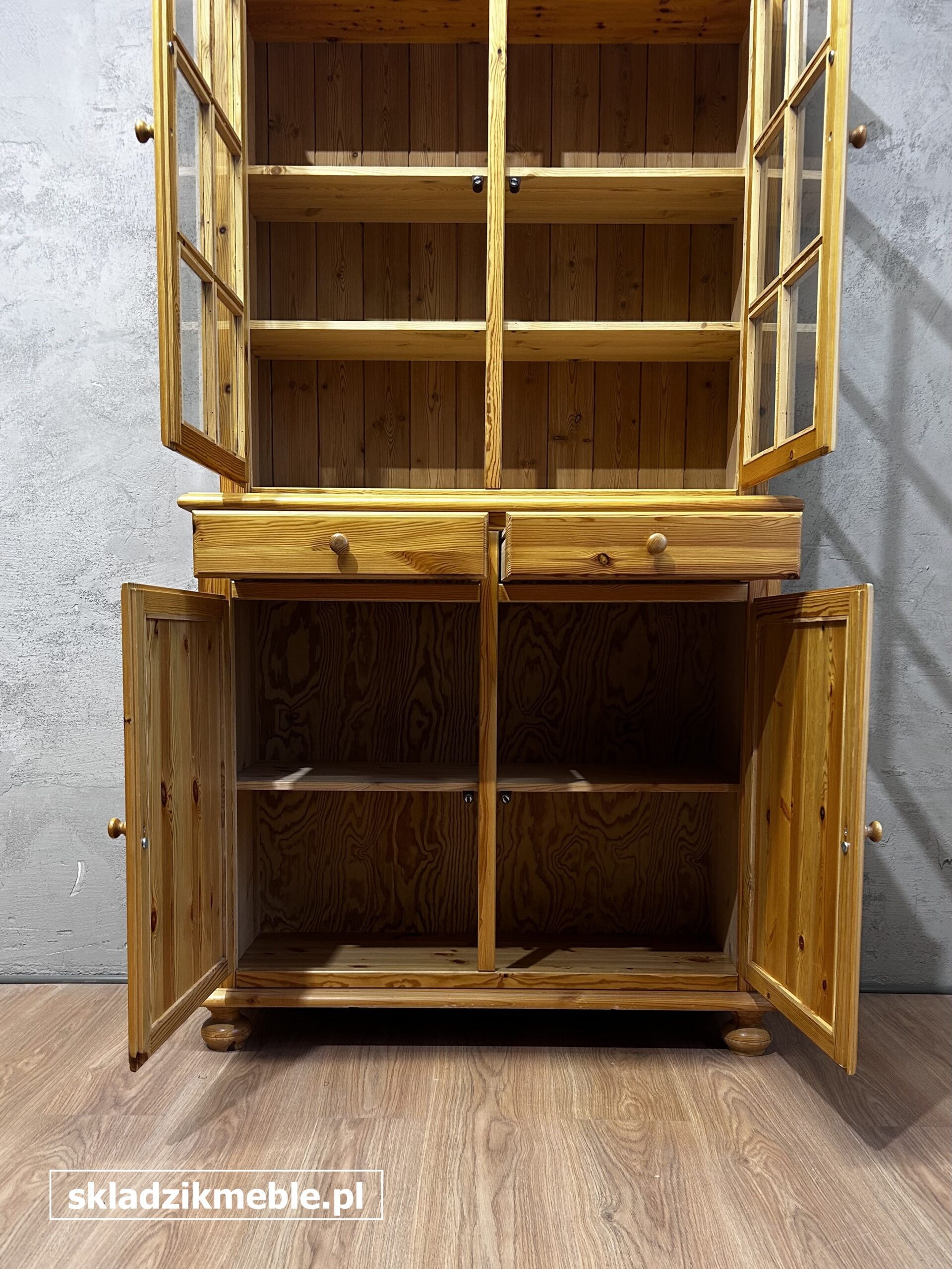 030226 WĄSKI KREDENS SOSNOWY, PRZESZKLONA WITRYNA