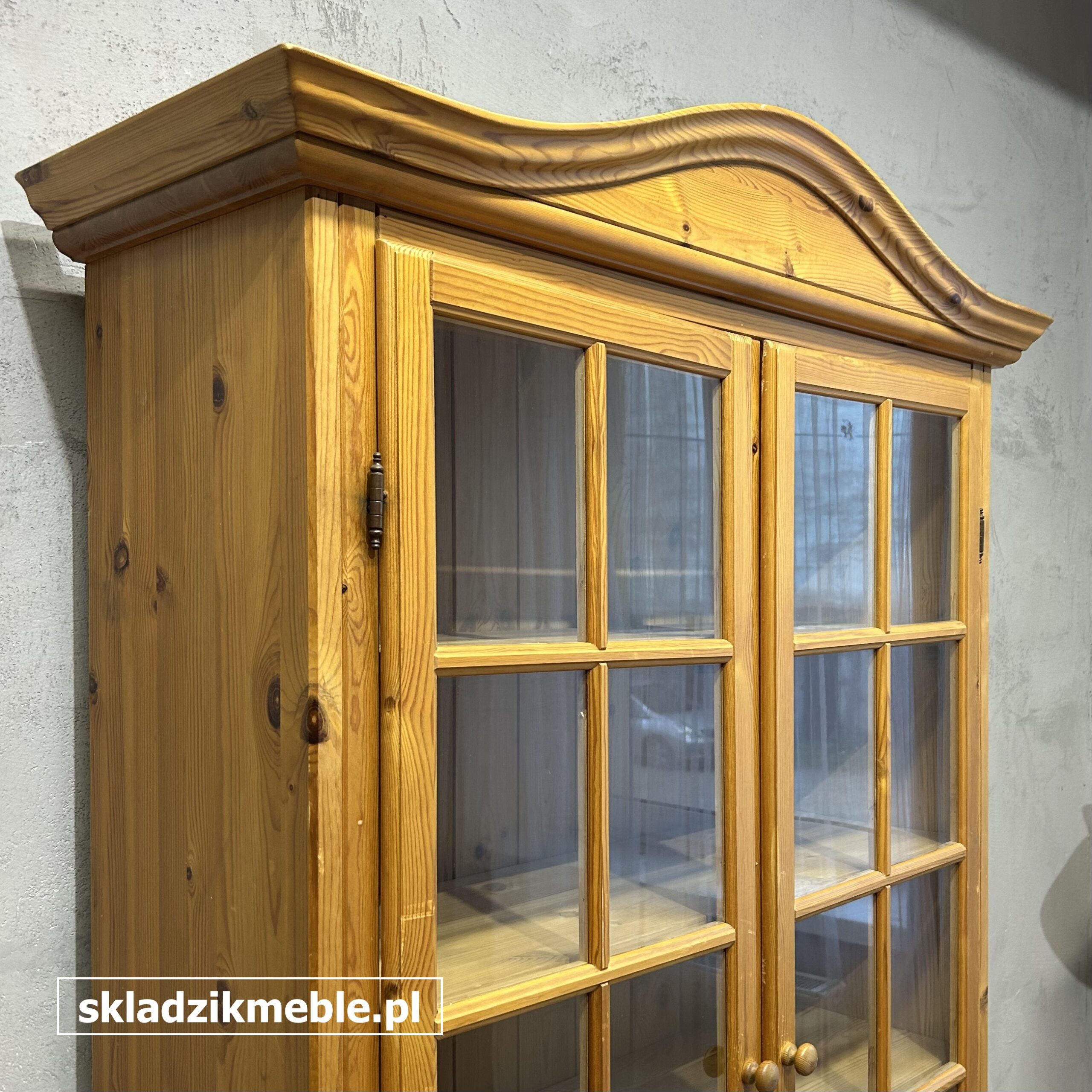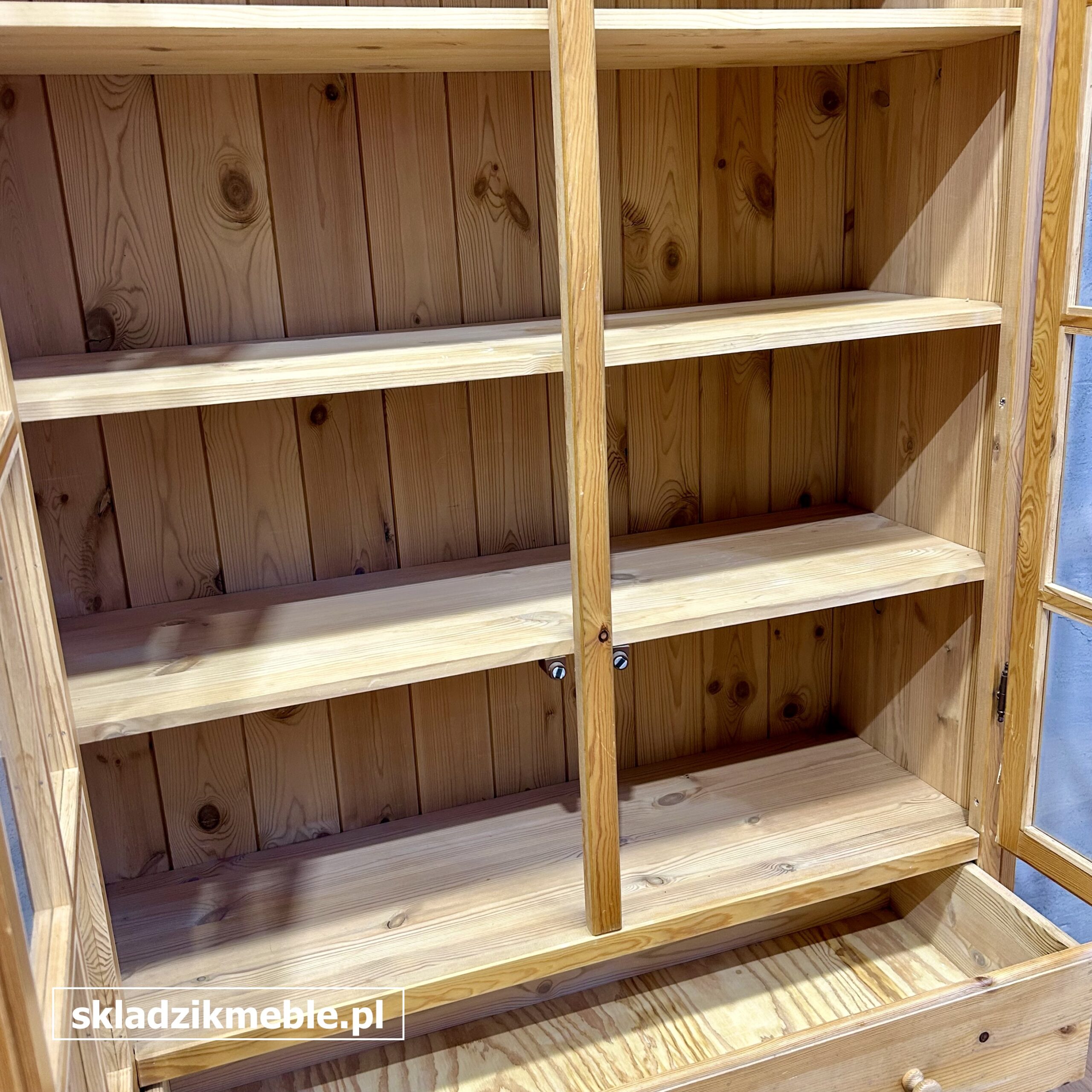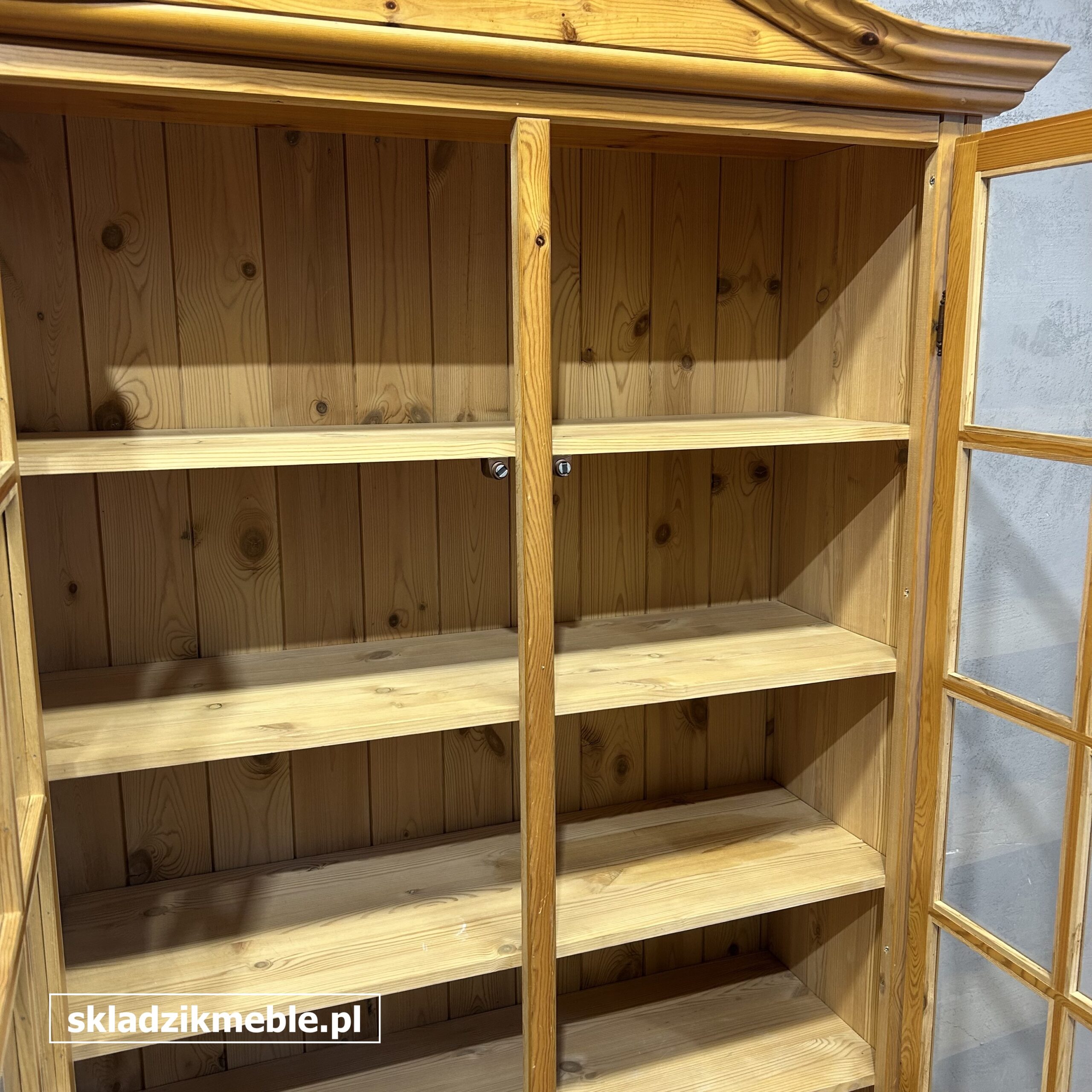 Witryna sosnowa, biblioteczka o solidnej konstrukcji drewnianej