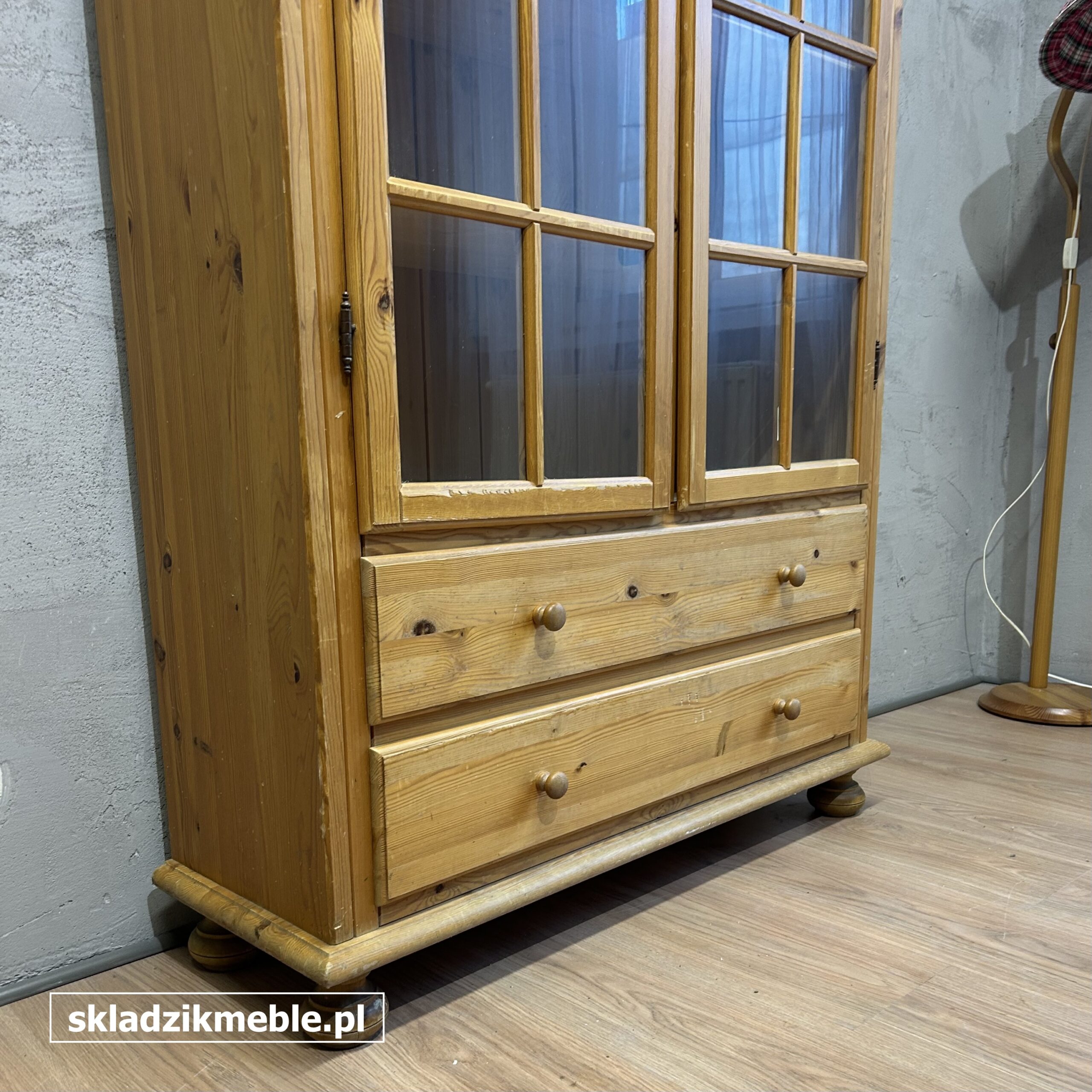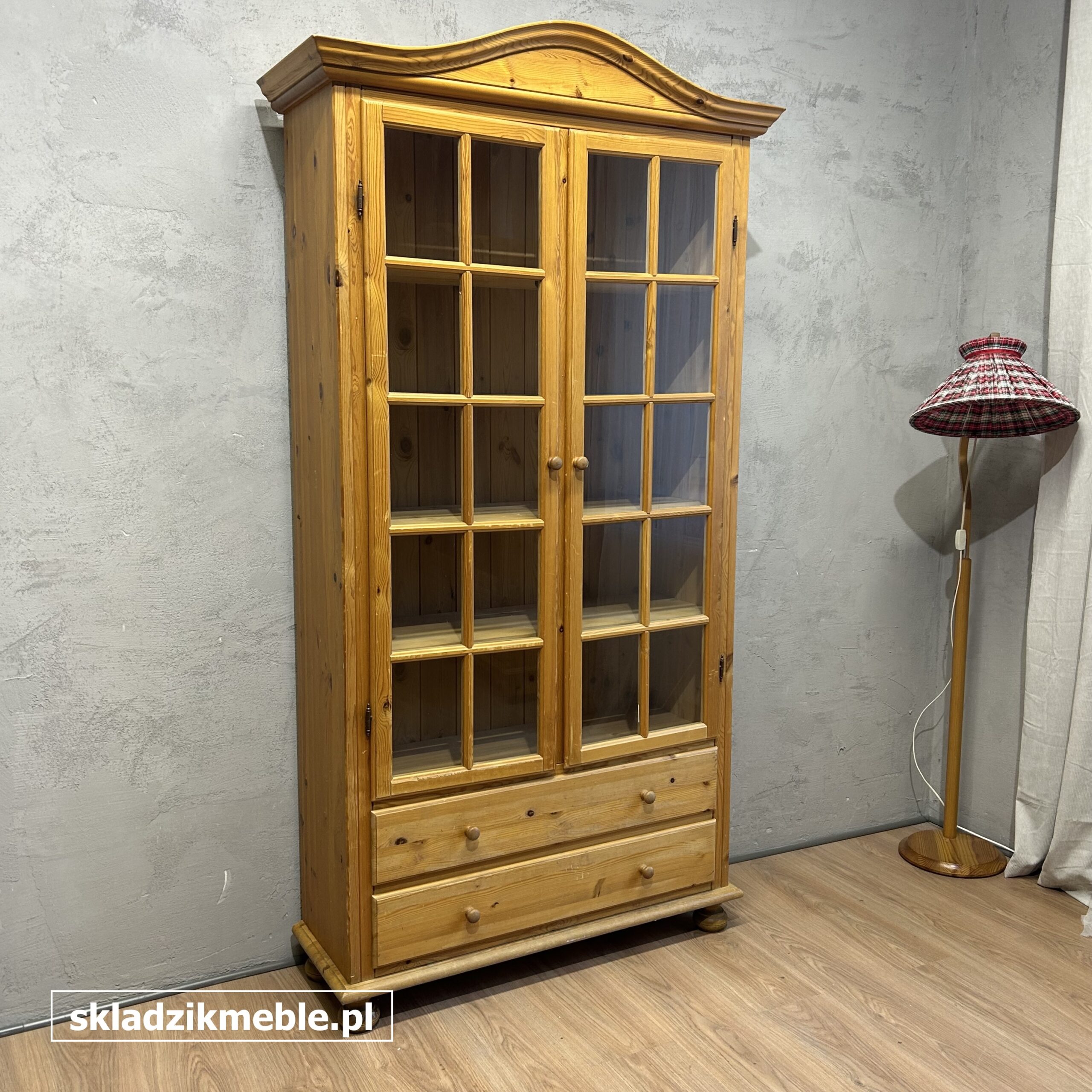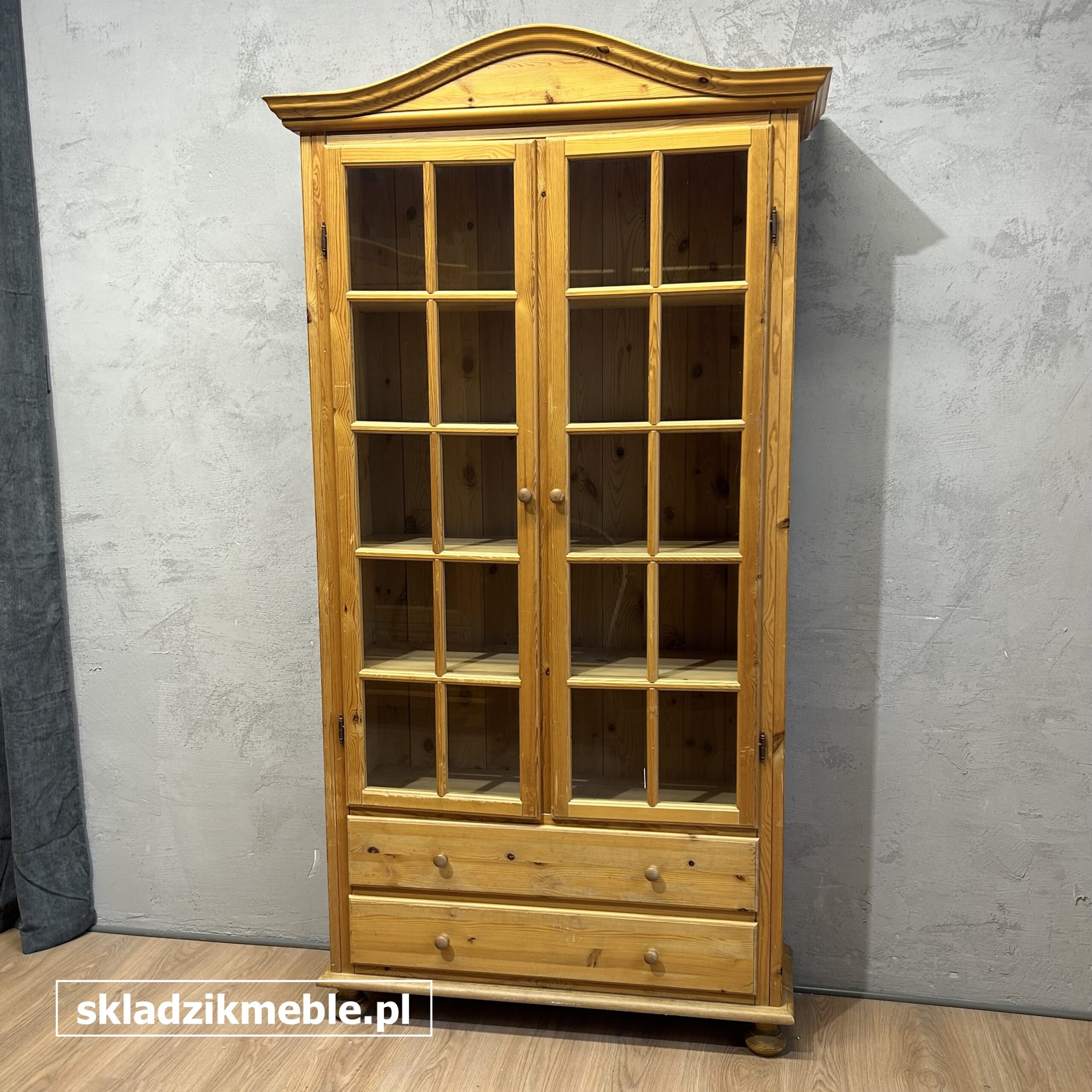 Witryna sosnowa, biblioteczka o solidnej konstrukcji drewnianej