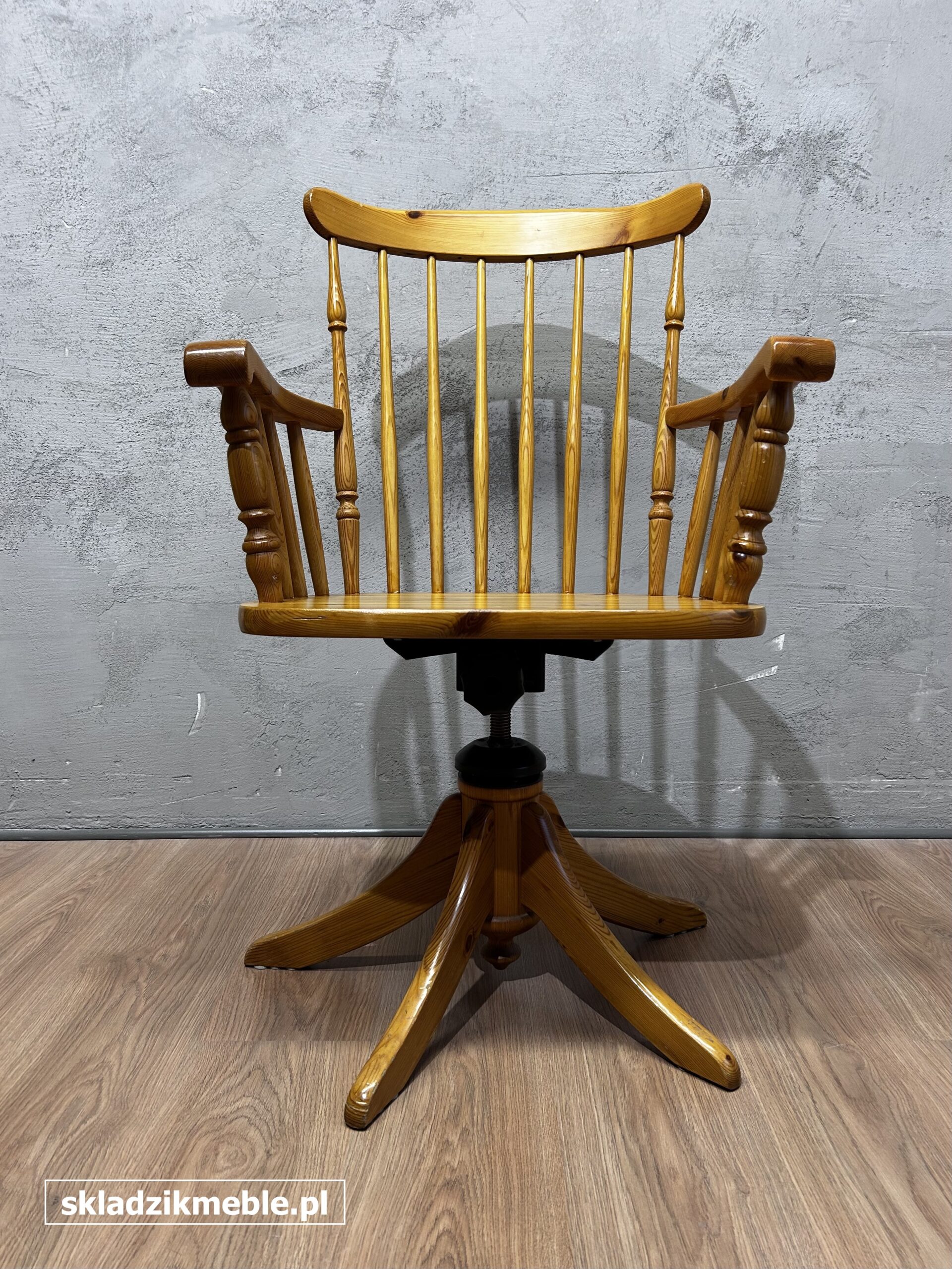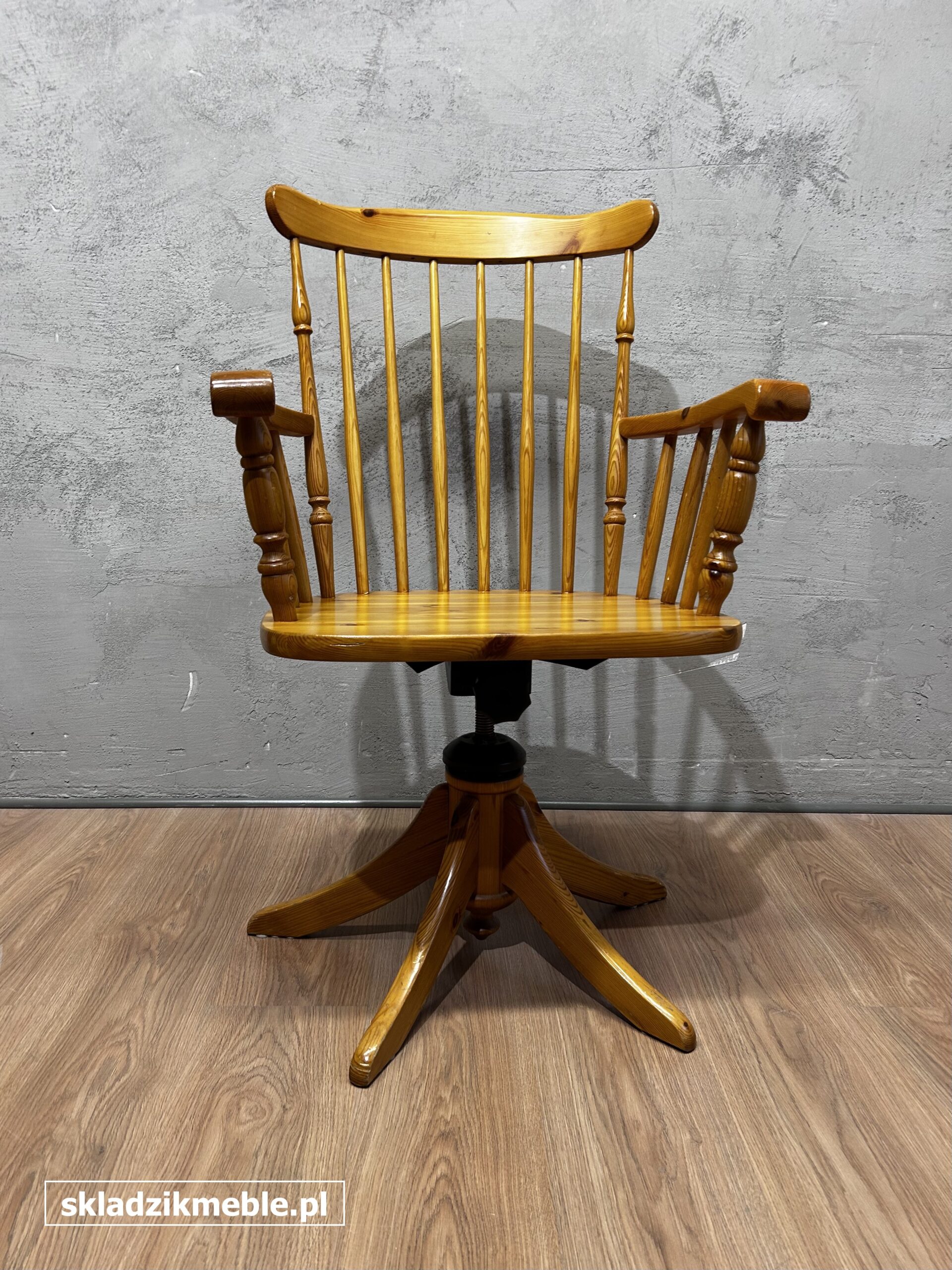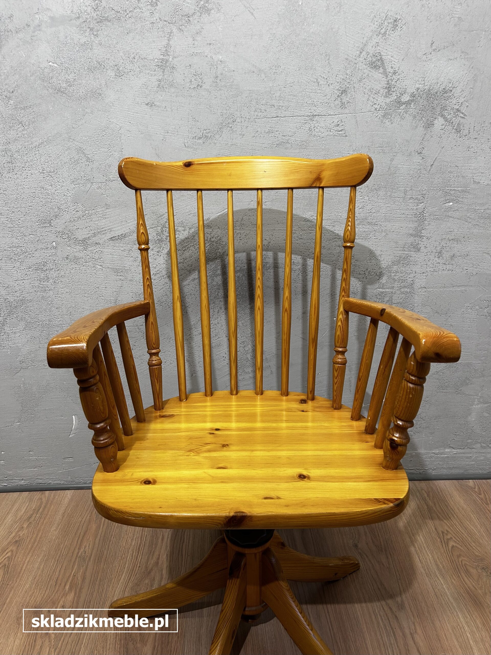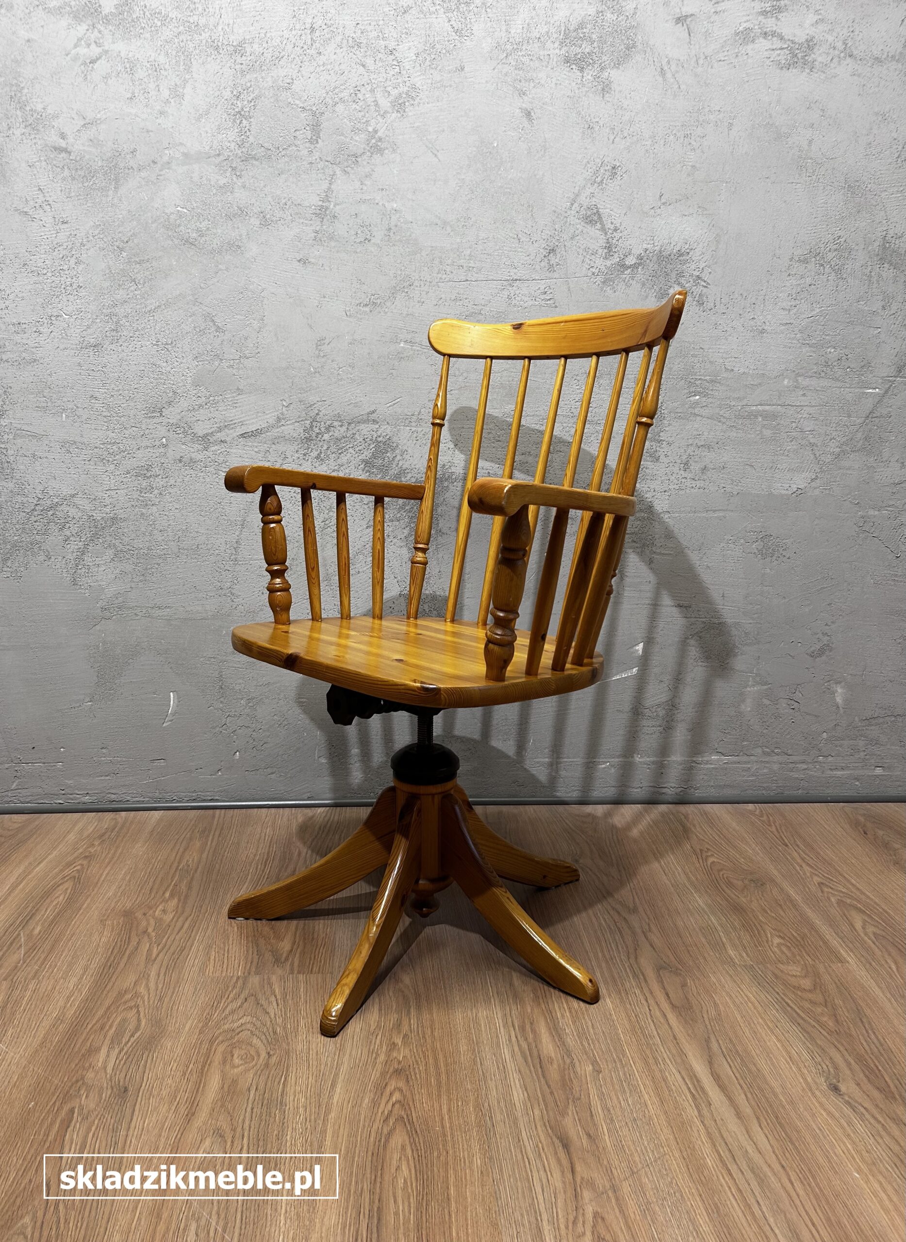 • Klasyczny sosnowy fotel biurowy, obrotowy