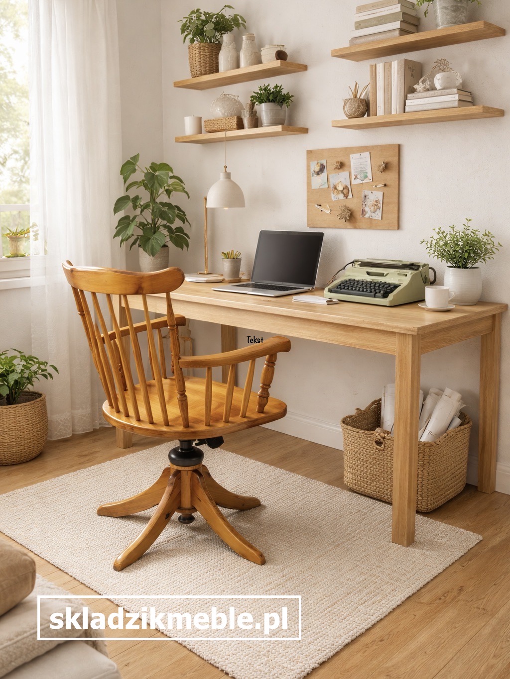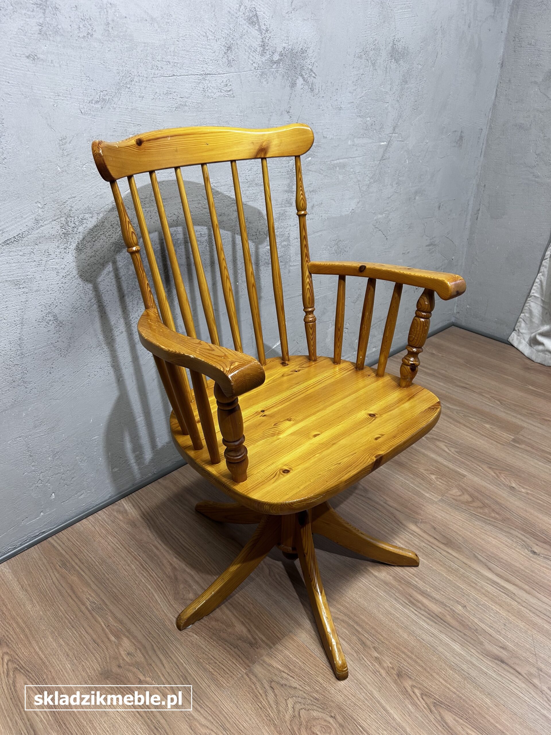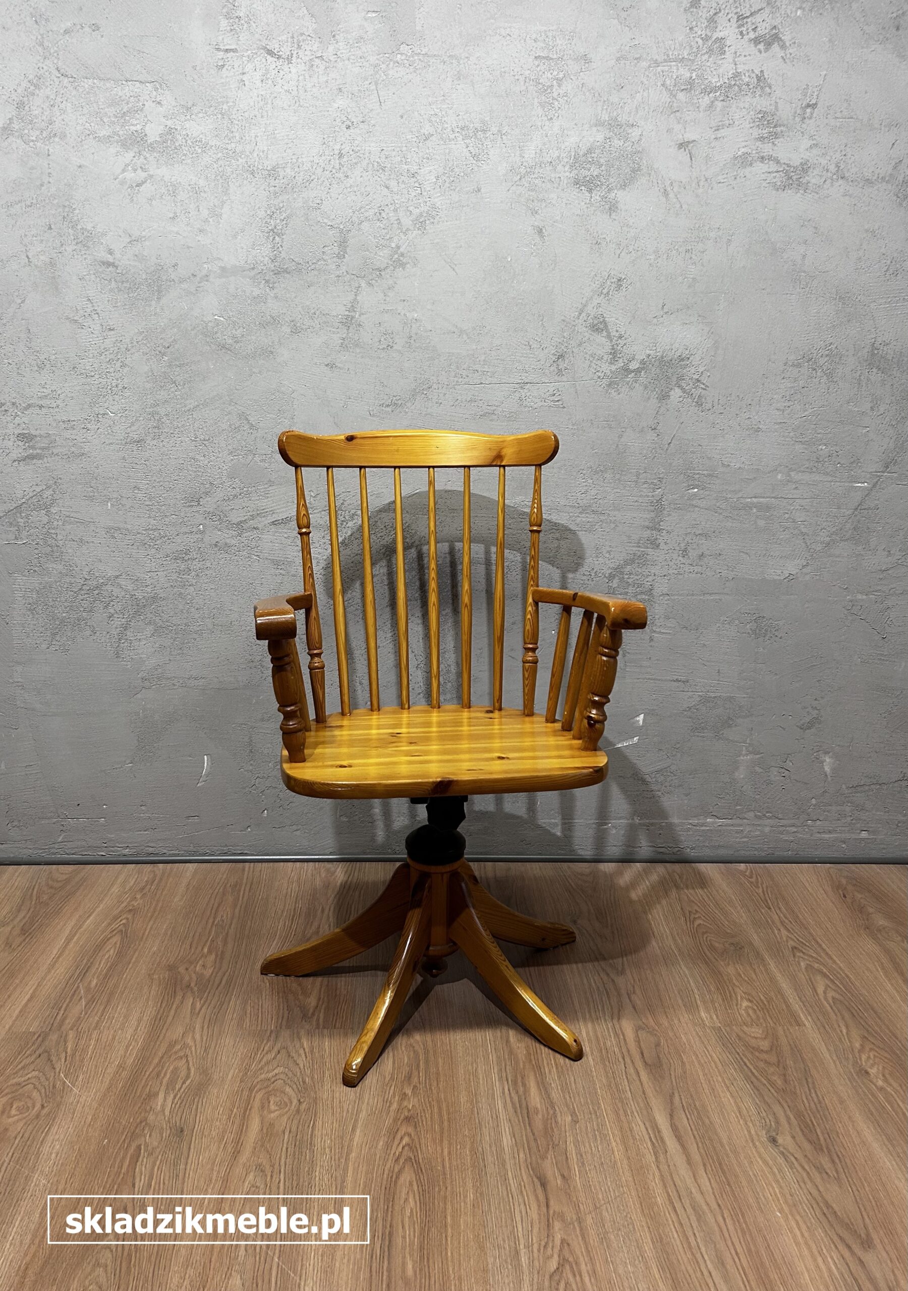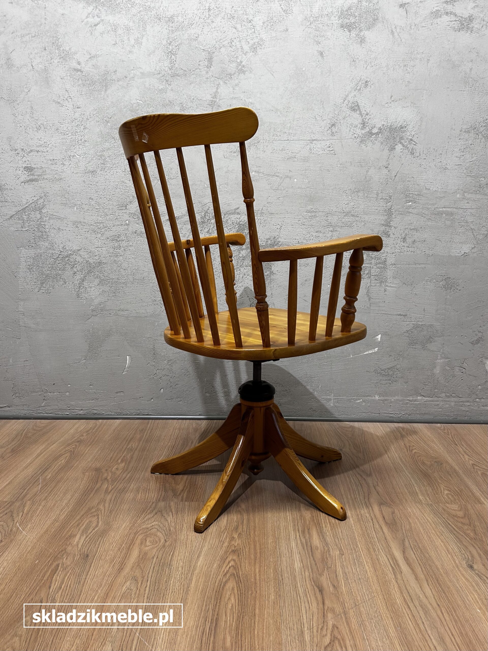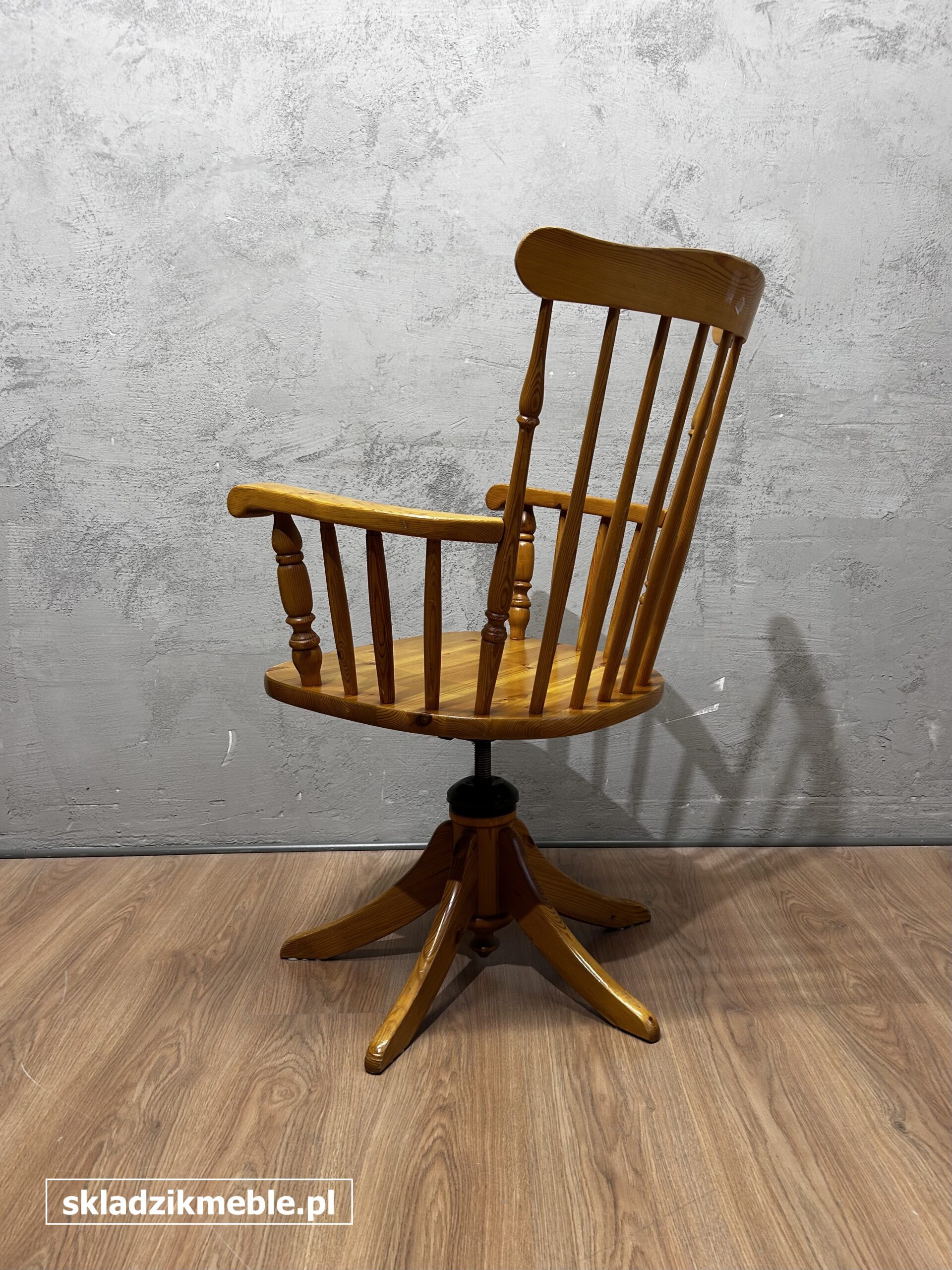 • Klasyczny sosnowy fotel biurowy, obrotowy