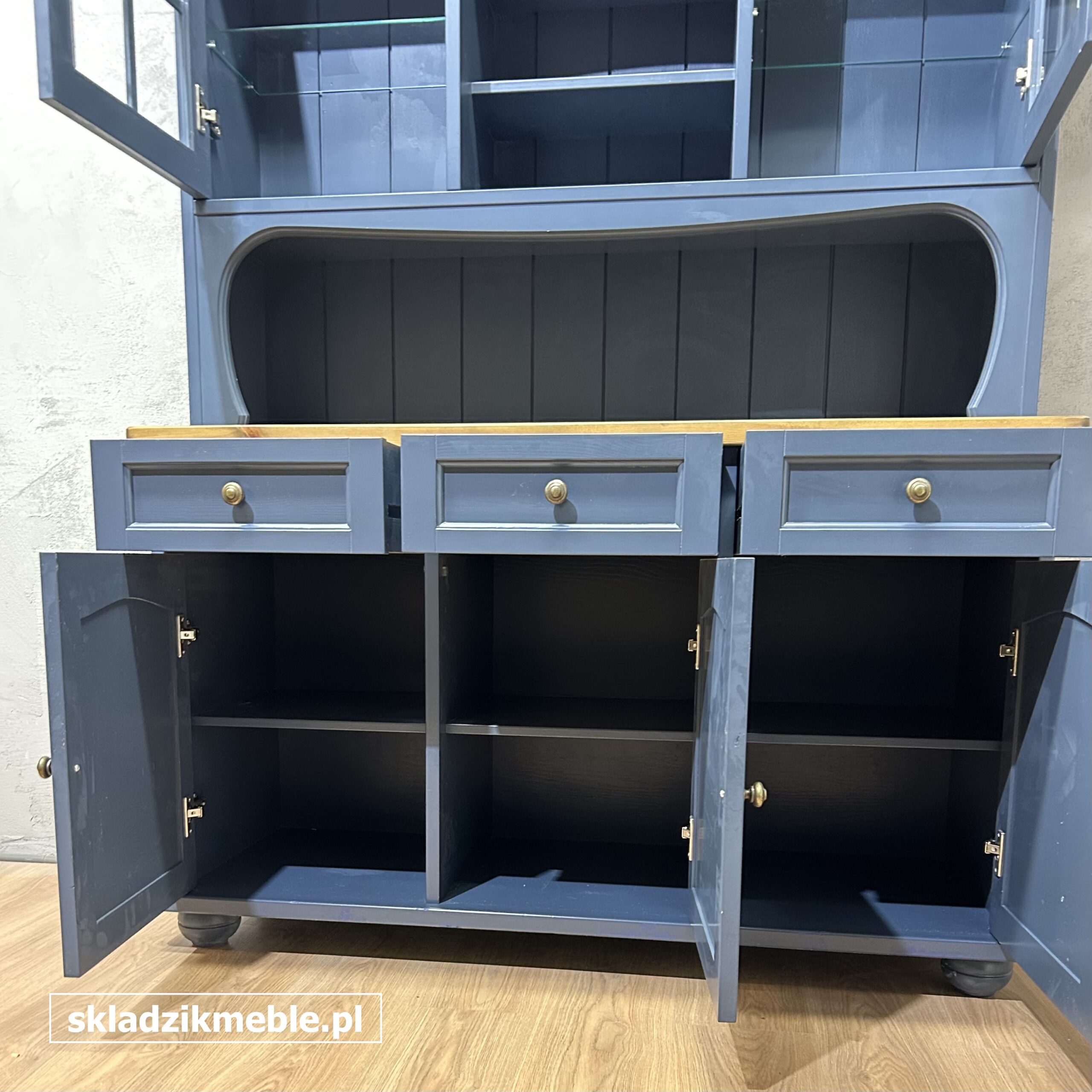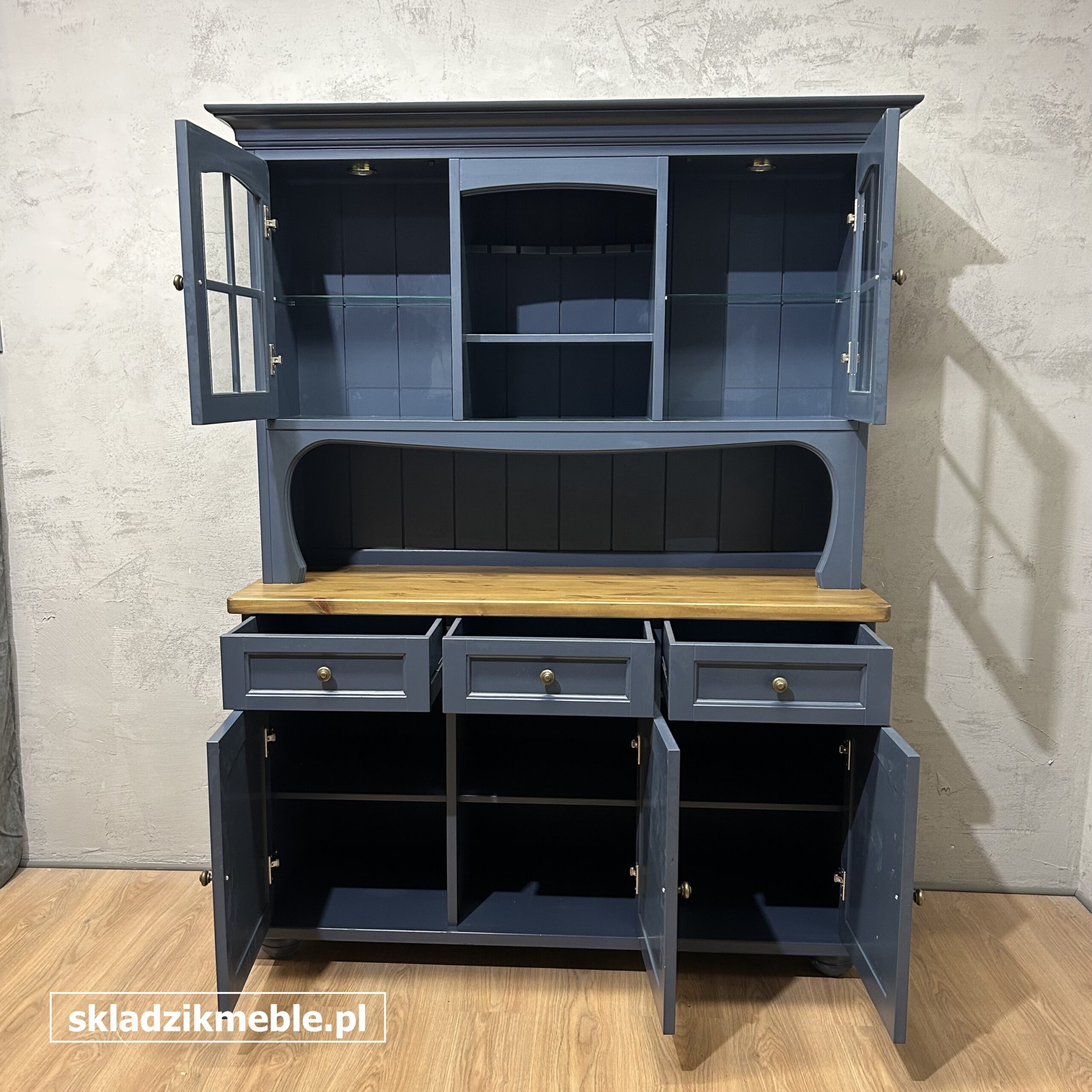 121225 KREDENS SOSNOWY W KOLORZE GRANATOWYM