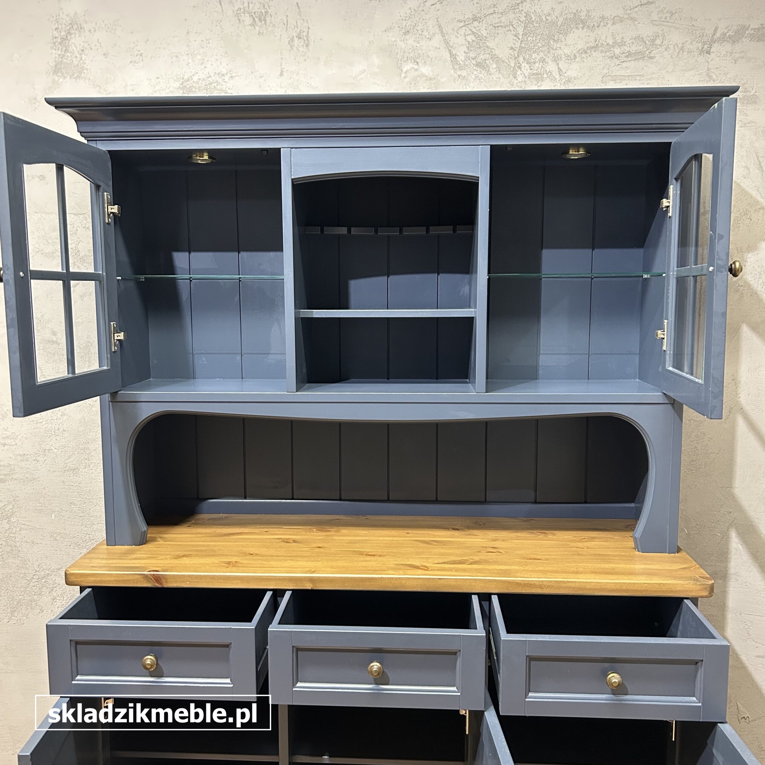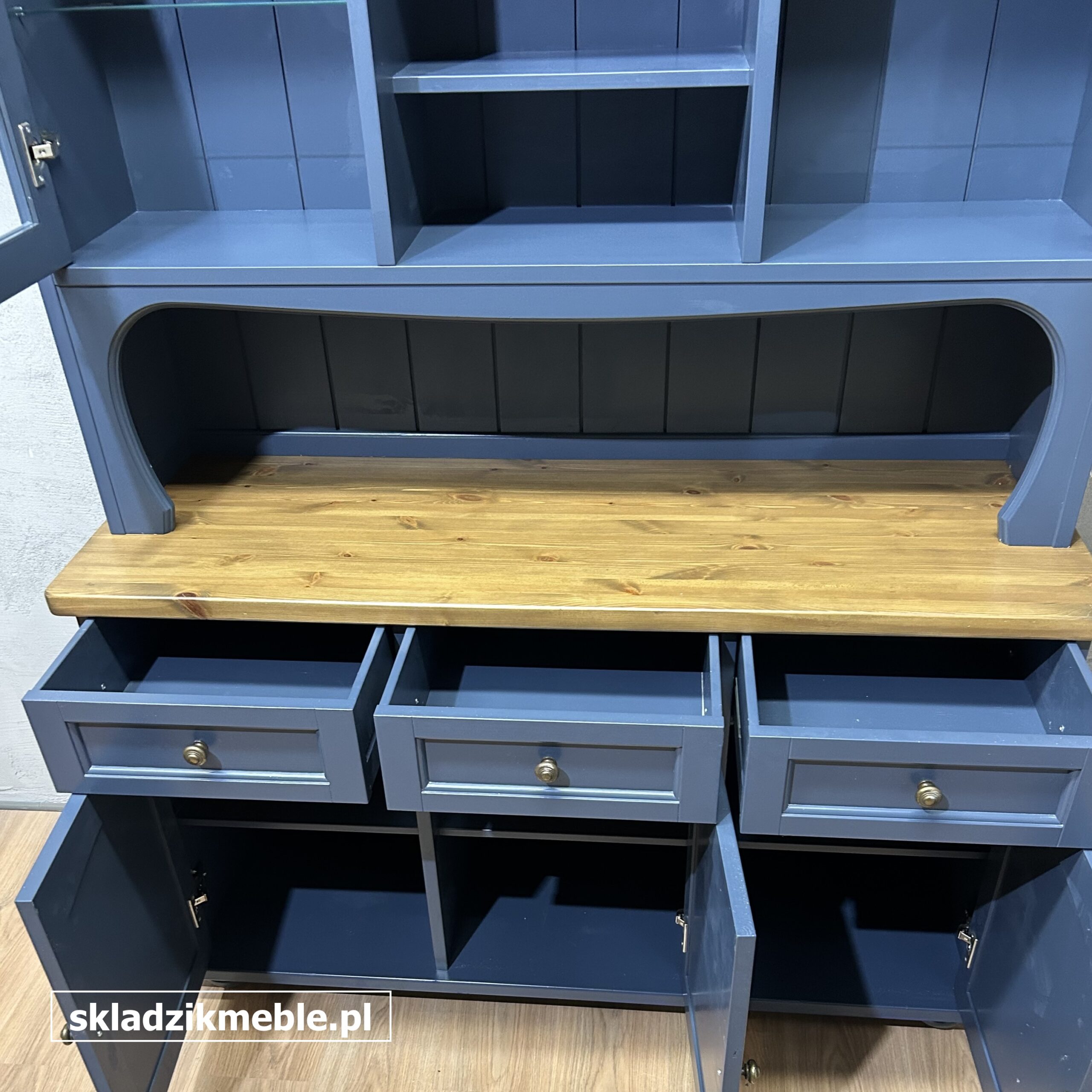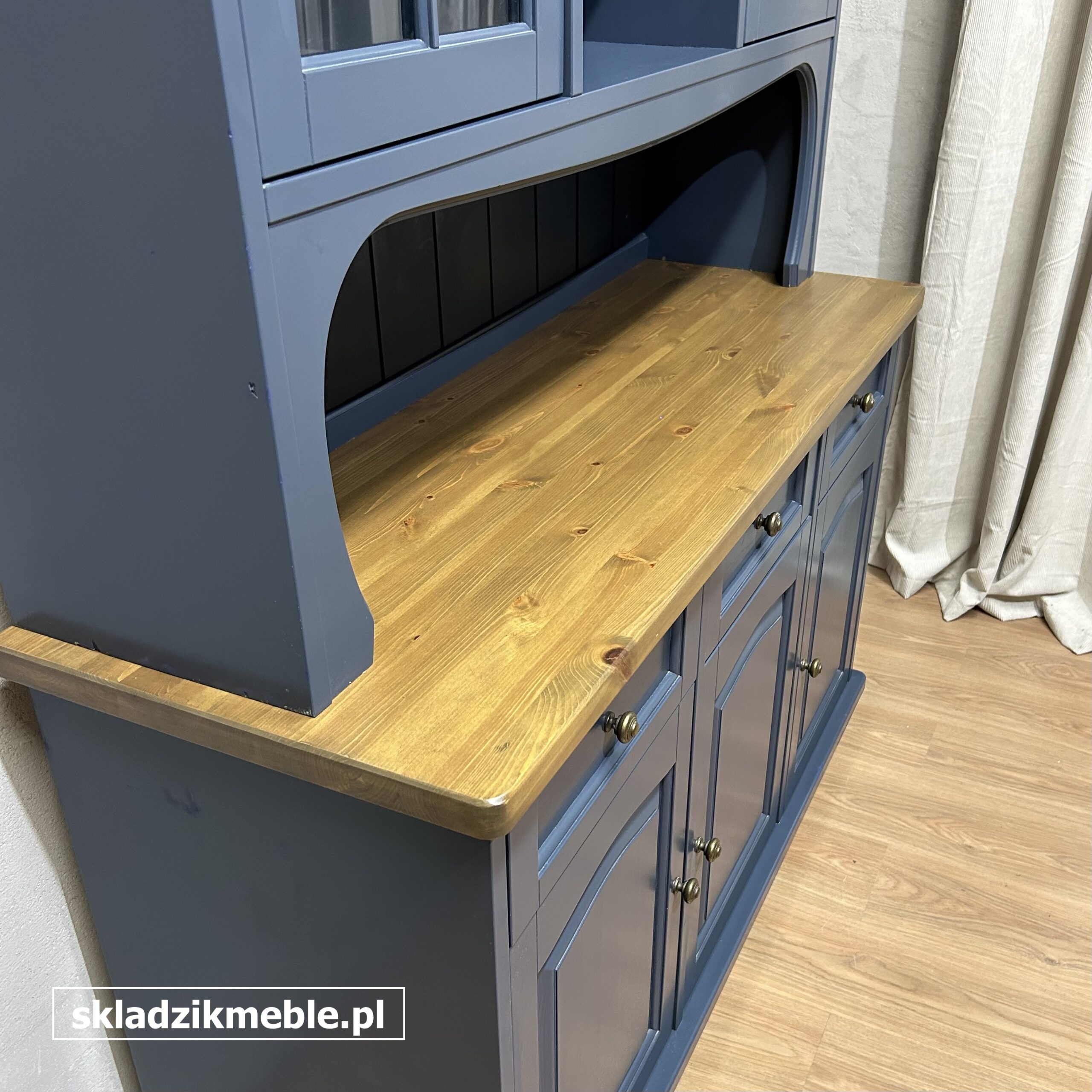 Niespotykany kredens sosnowy w kolorze granatowym