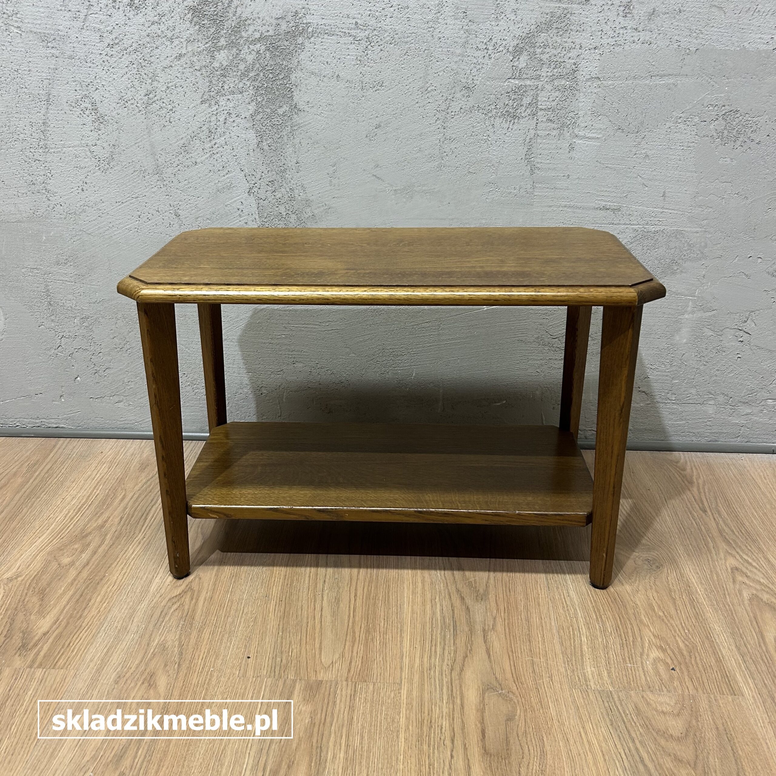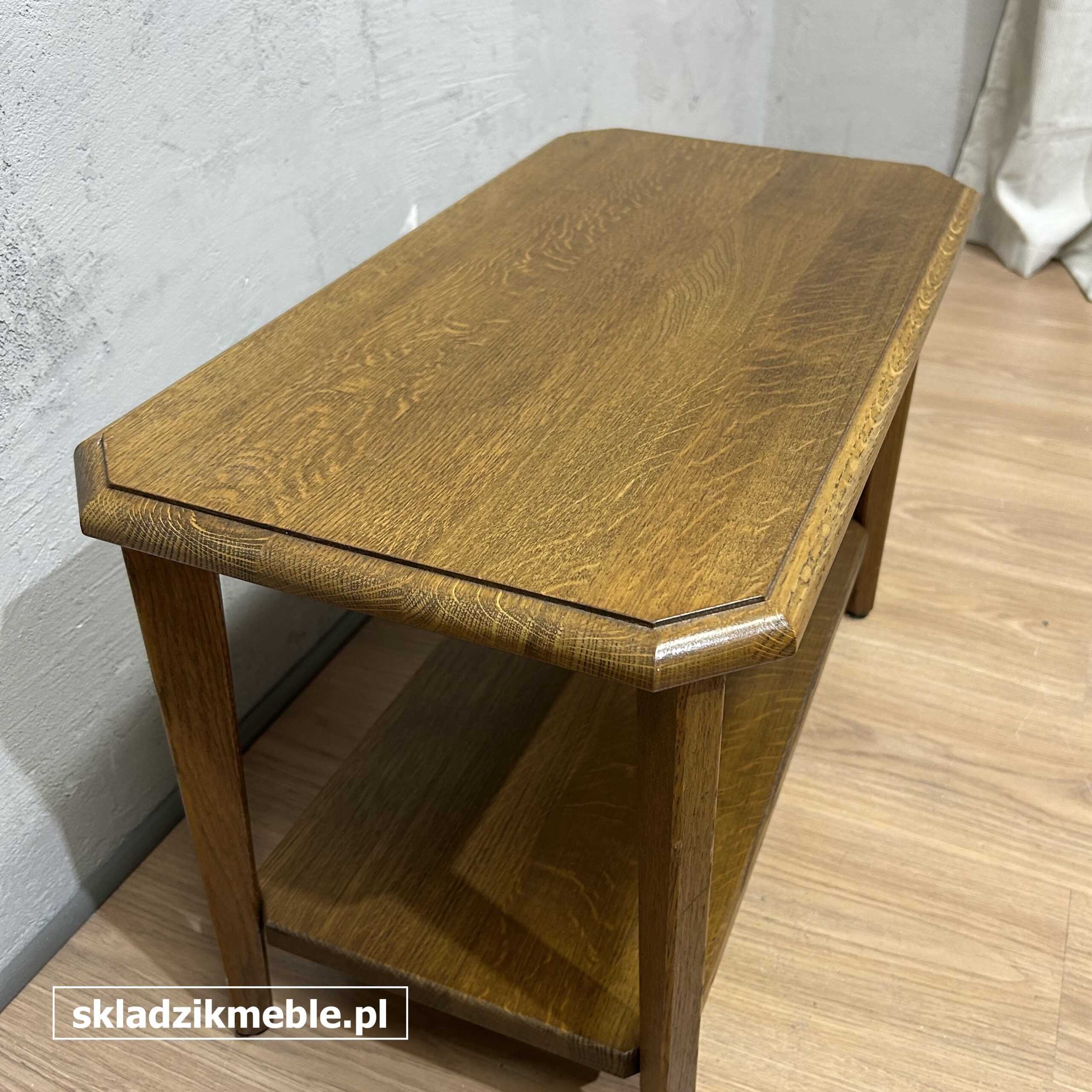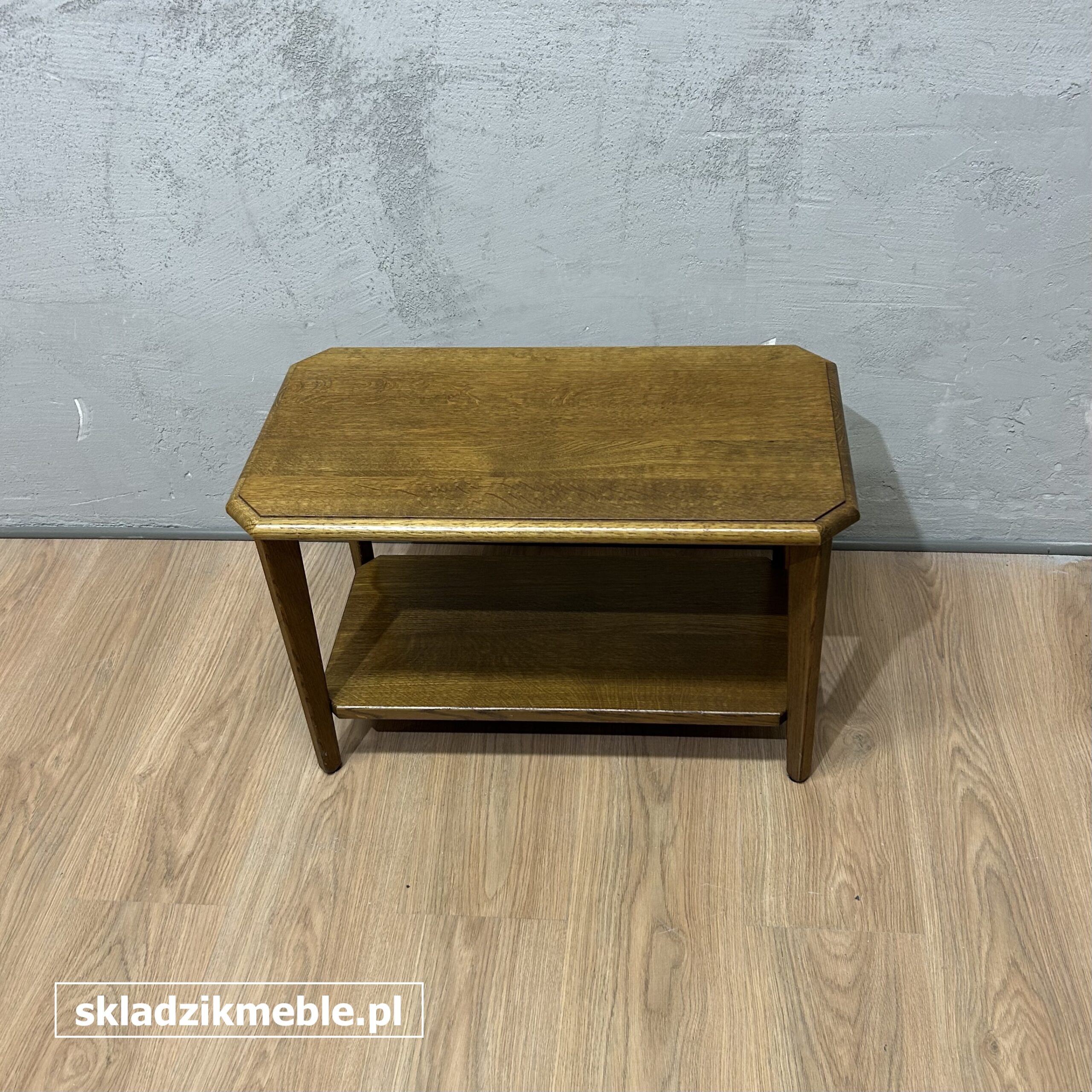 131225 NISKI DĘBOWY STOLIK KAWOWY Z DODATKOWĄ PÓŁKĄ