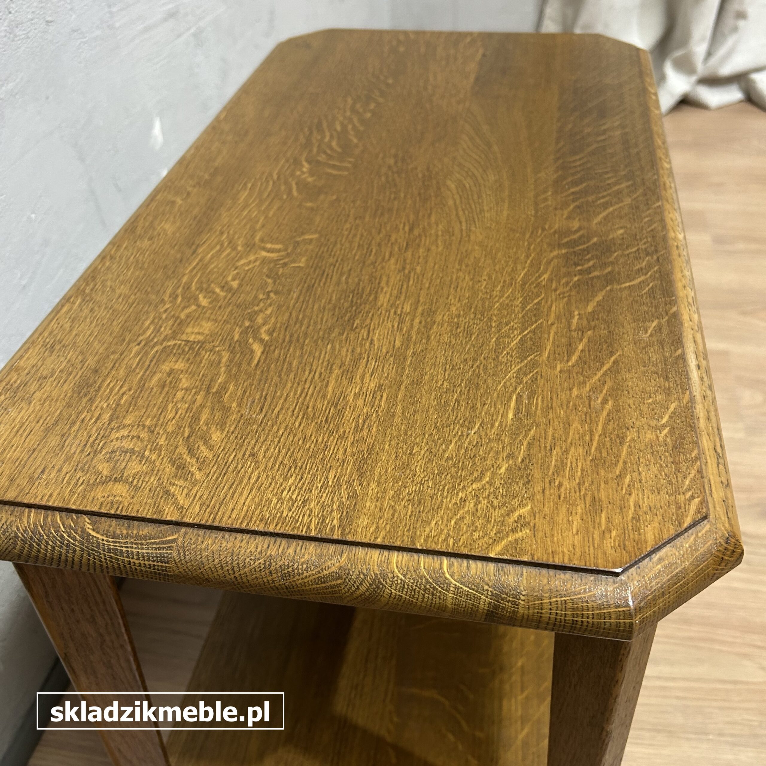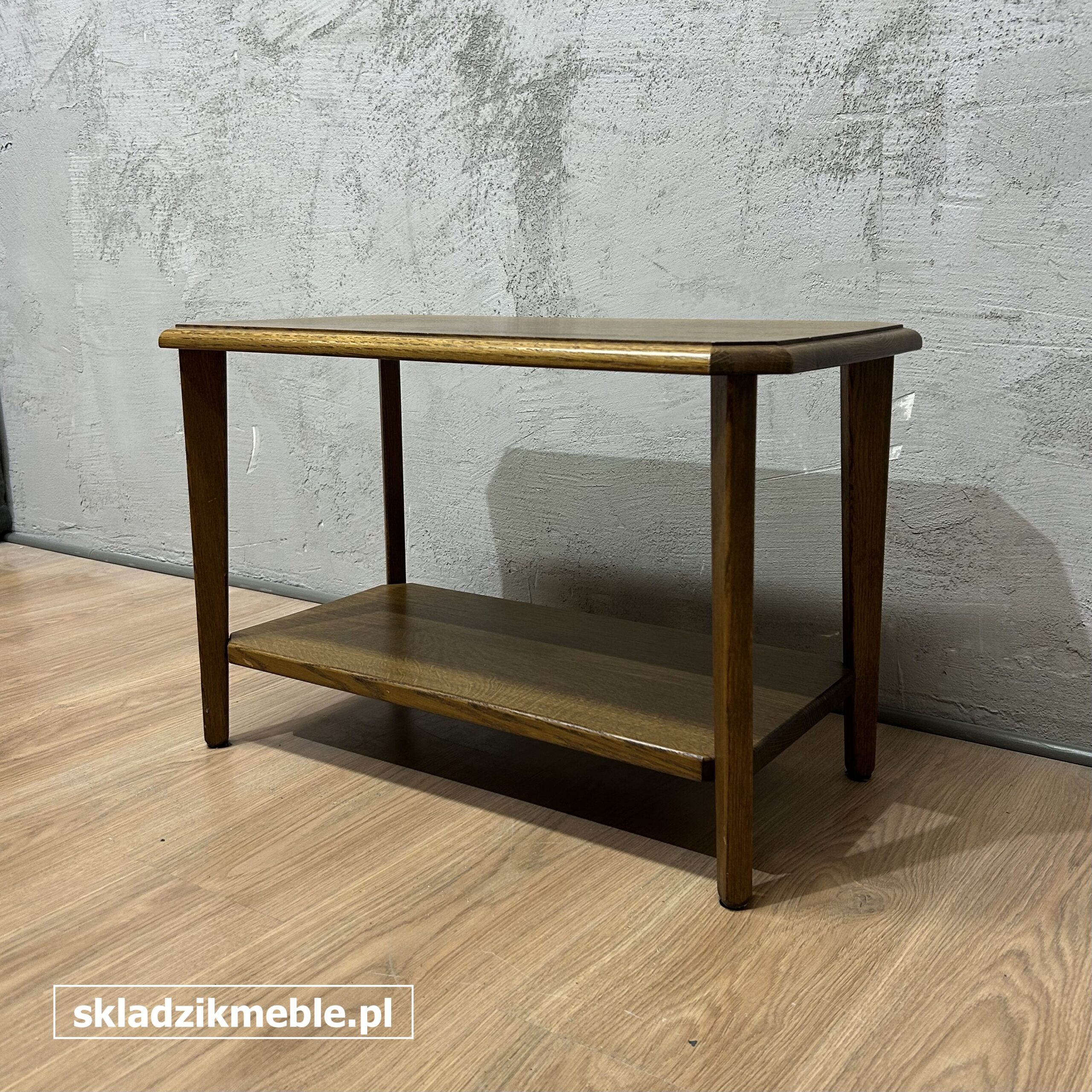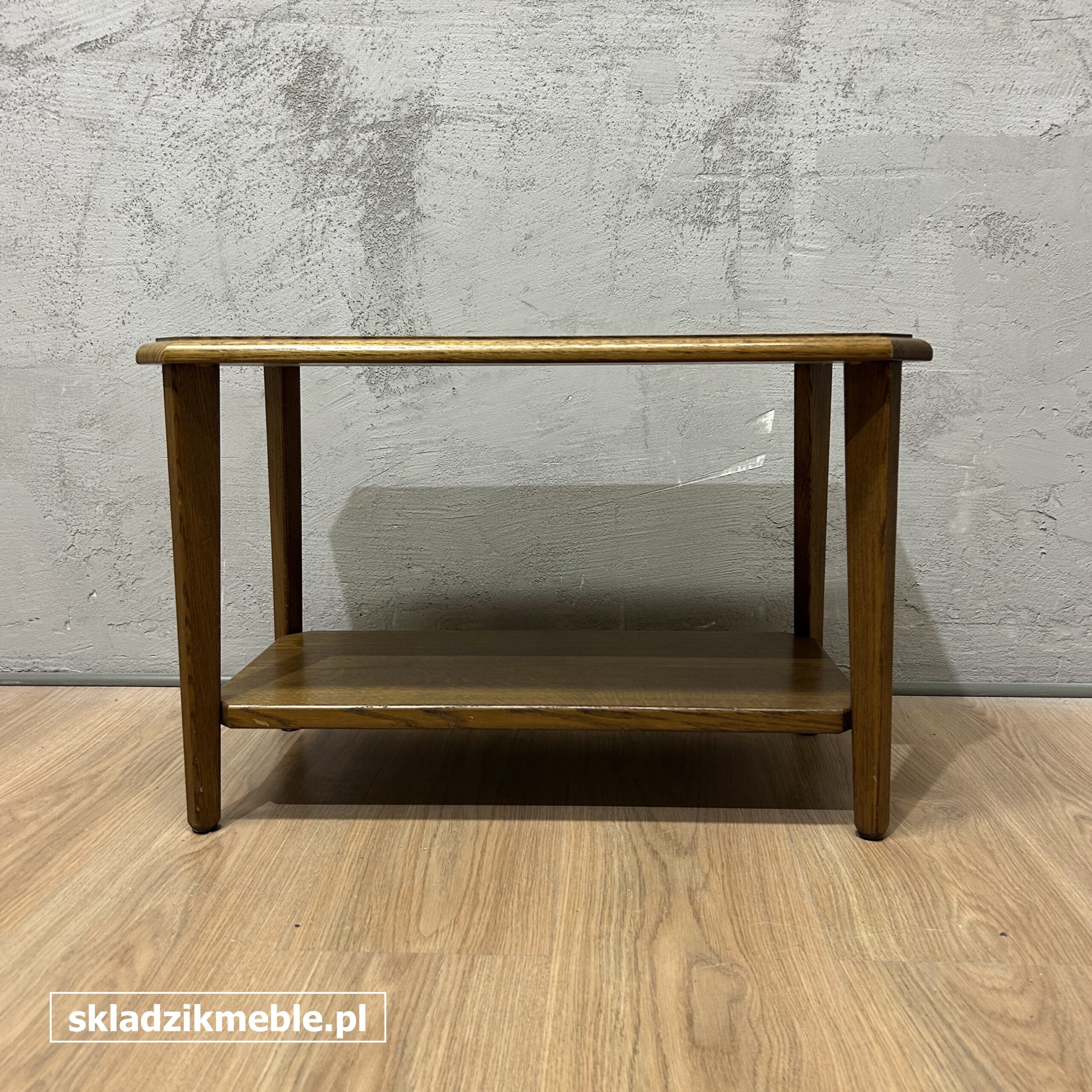 131225 NISKI DĘBOWY STOLIK KAWOWY Z DODATKOWĄ PÓŁKĄ