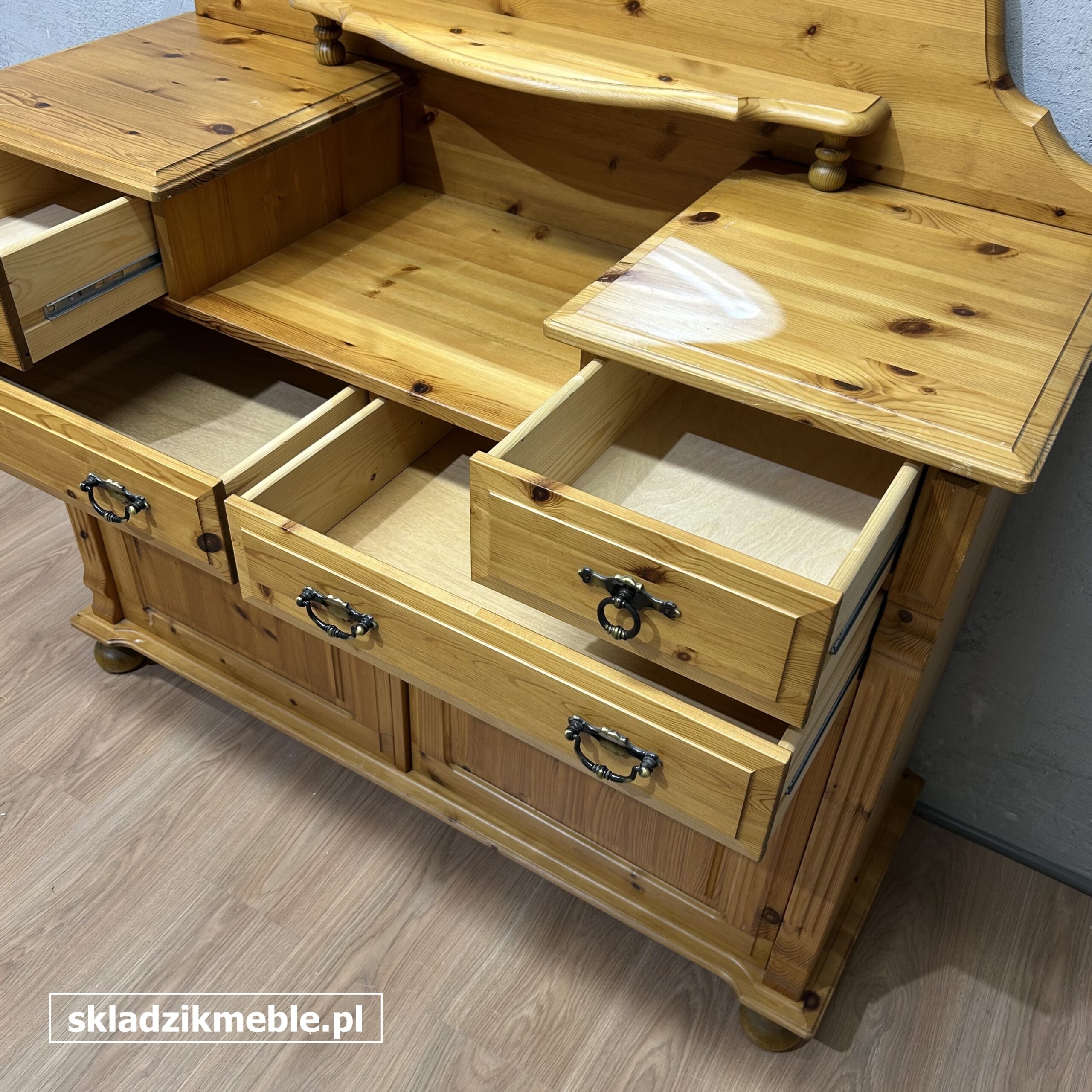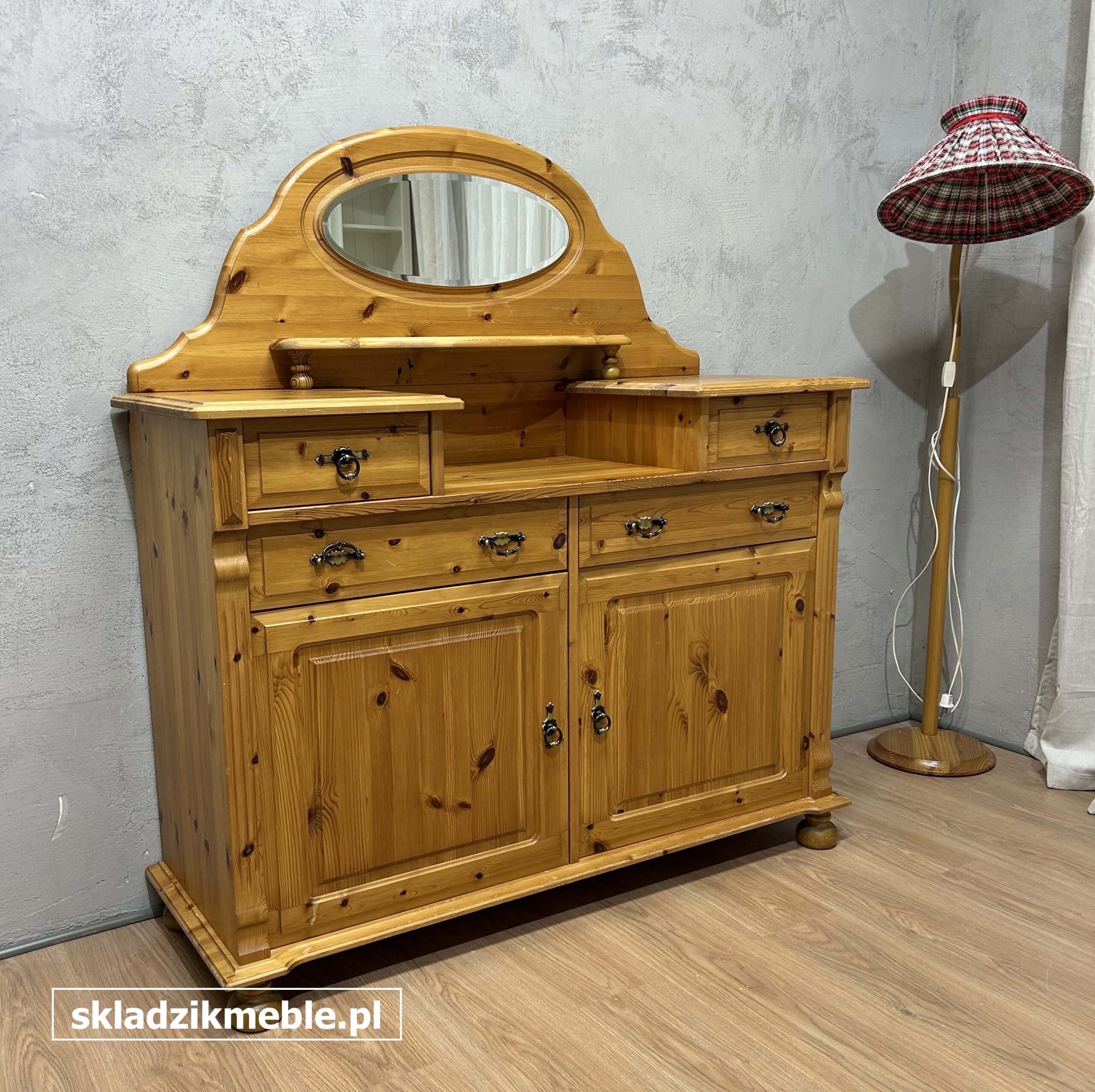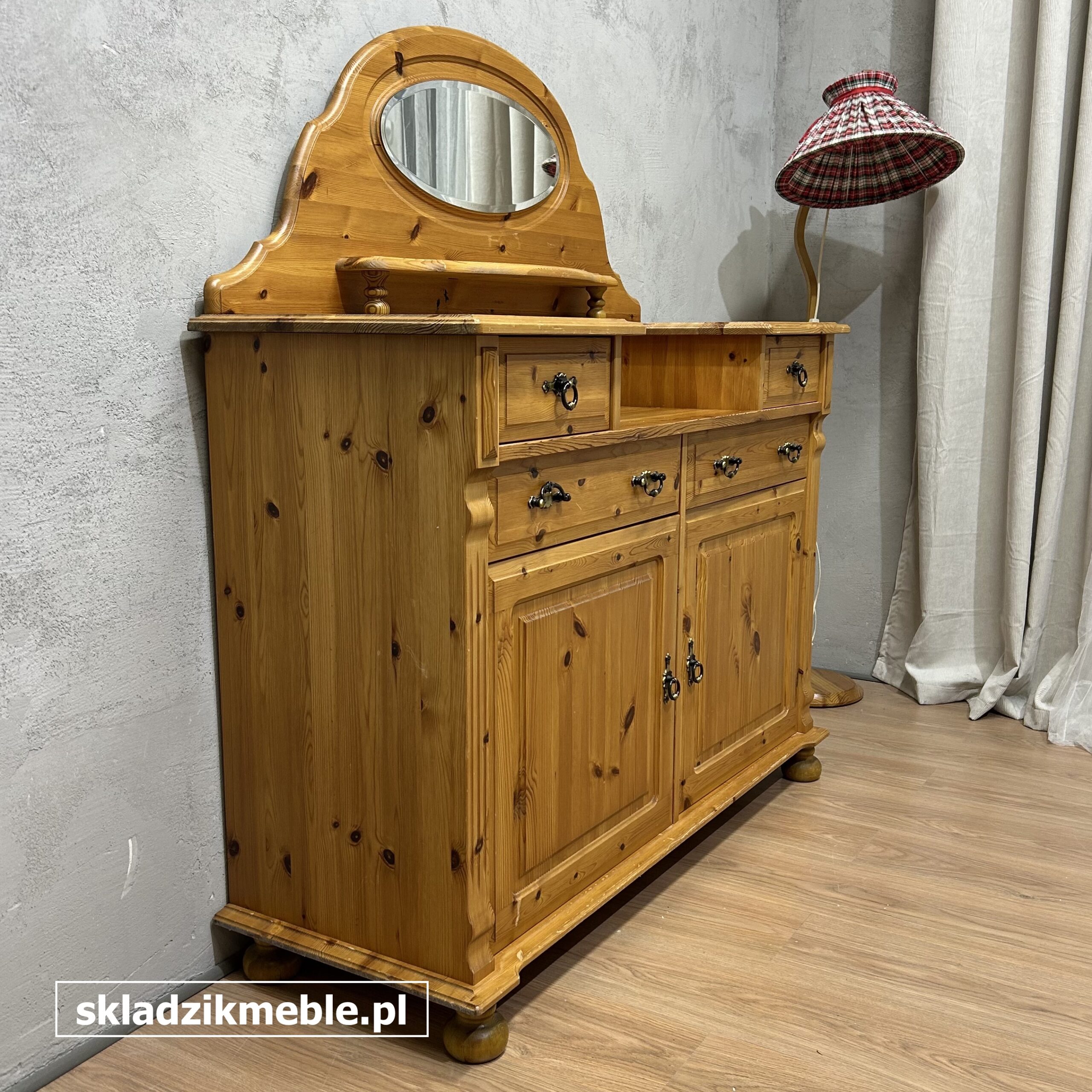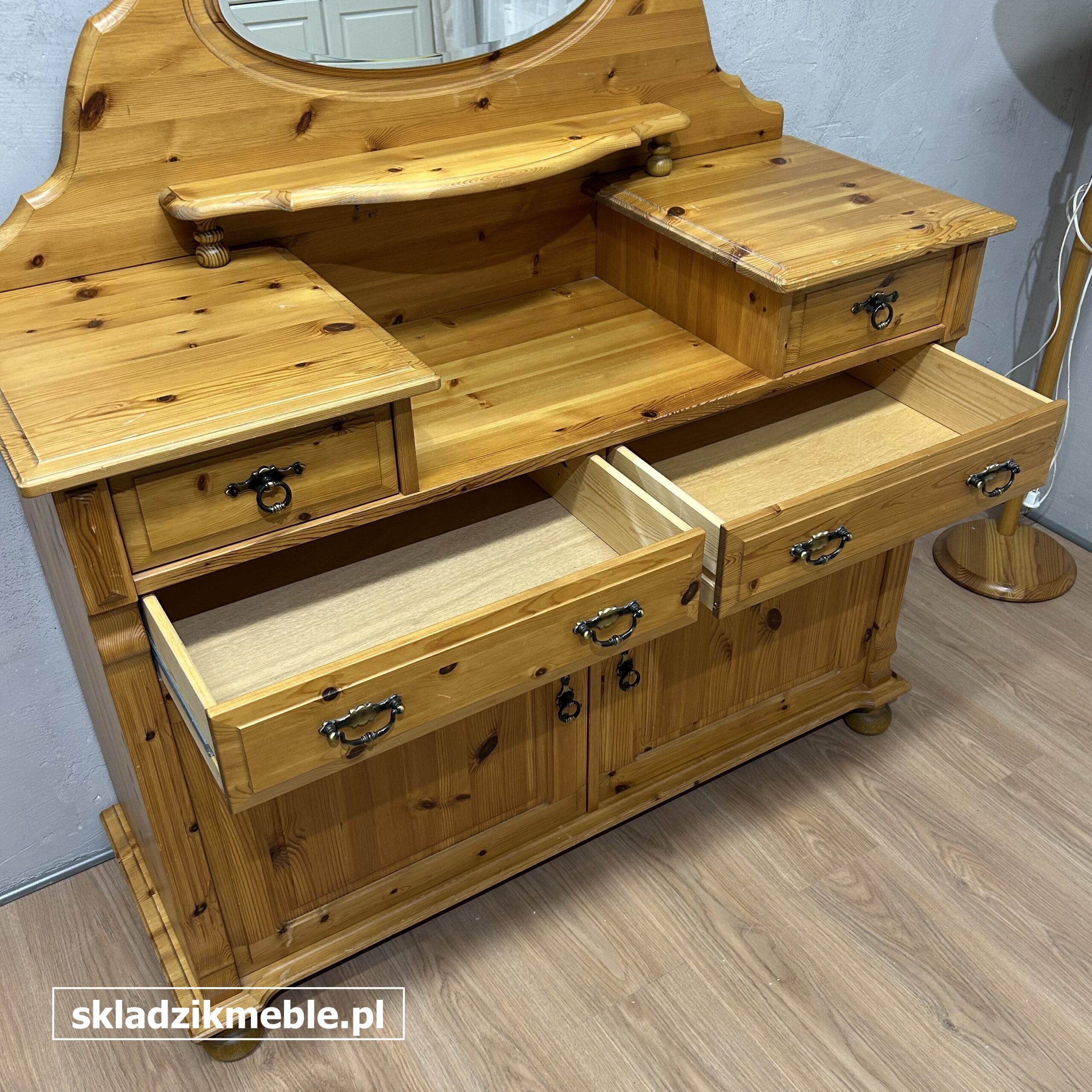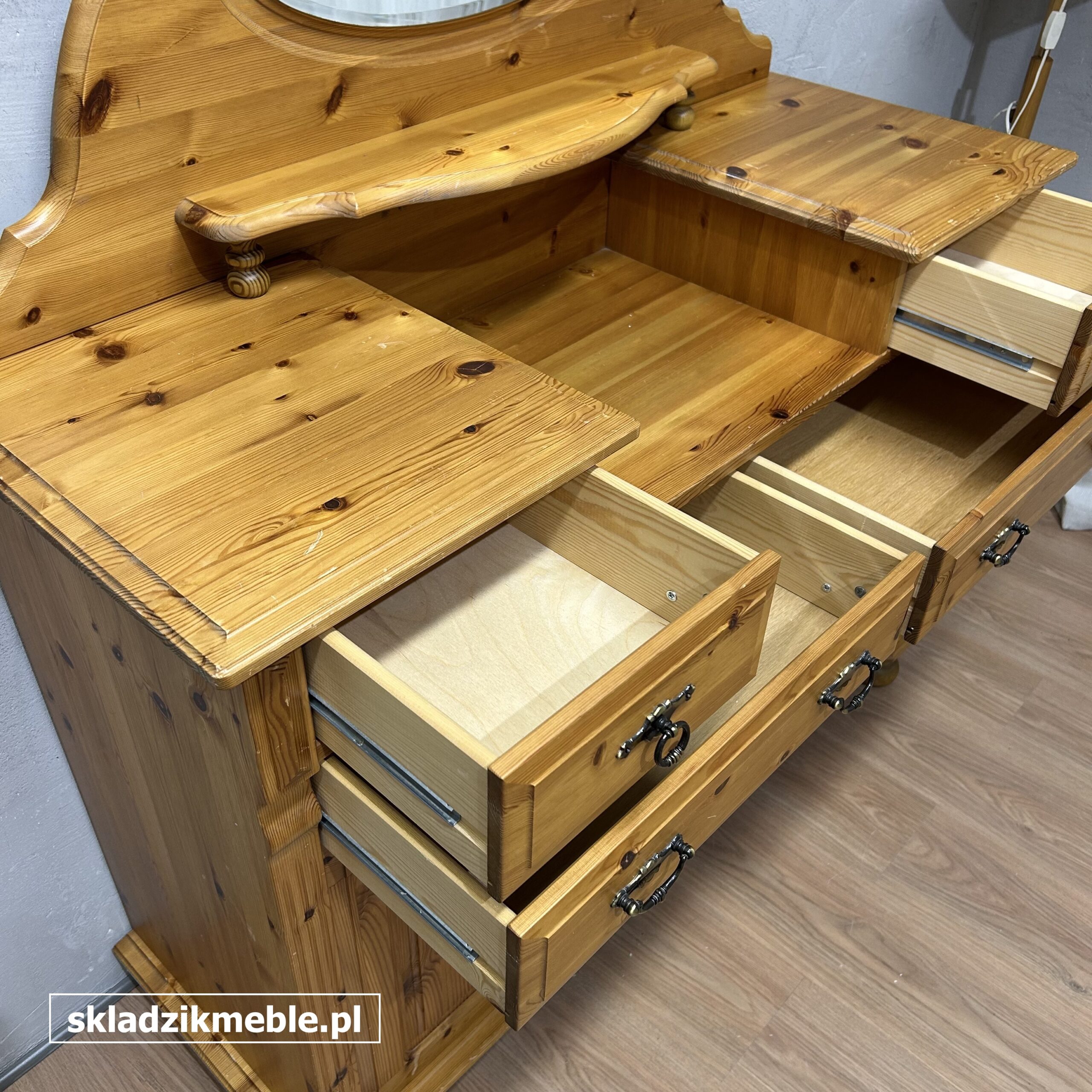 181225 KOMODA SOSNOWA Z LUSTREM, TOALETKA Z SZUFLADKAMI